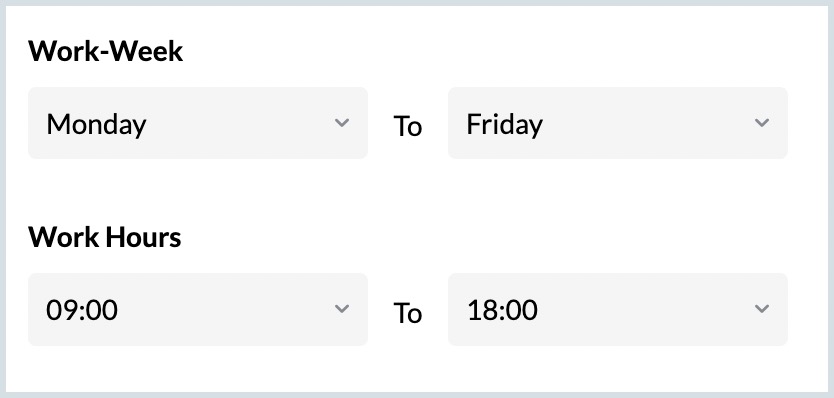 あなたの組織の勤務スケジュールと場所により、Zoho Calendarで労働週労働時間を設定できます。例えば、月曜日から金曜日まで、勤務時間が午前9時から午後6時である場合、それをZoho Calendarに設定できます。これにより、カレンダー表示をカスタマイズできます。