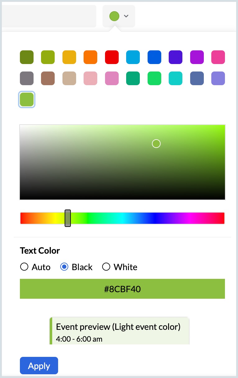 3. カラーピッカーを使って、あなたのカレンダーのためのカスタム色を選択することもできます。