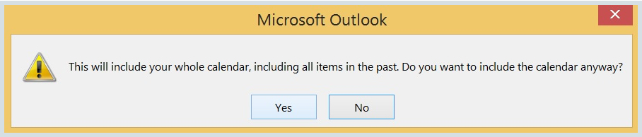 9. 過去の処理を含むカレンダー全体をエクスポートするように求められます。Okをクリックして次の手順に進みます。