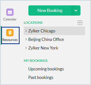 - Zoho Calendarにログインし、Resourcesに移動します。