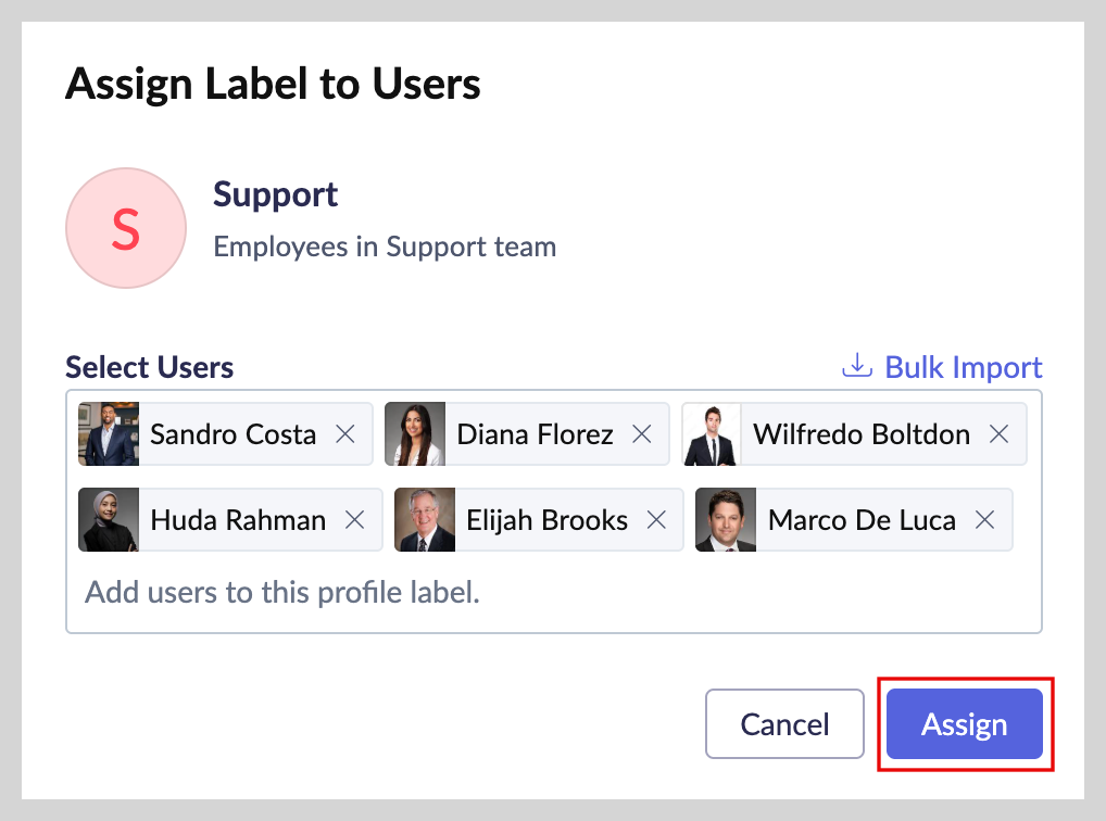 ポップアップでユーザーを選択し、[Assign] をクリックします。