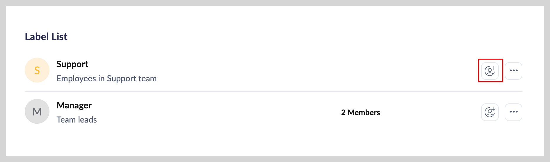 ラベルの右側にある[ユーザーを追加]アイコンをクリックします。