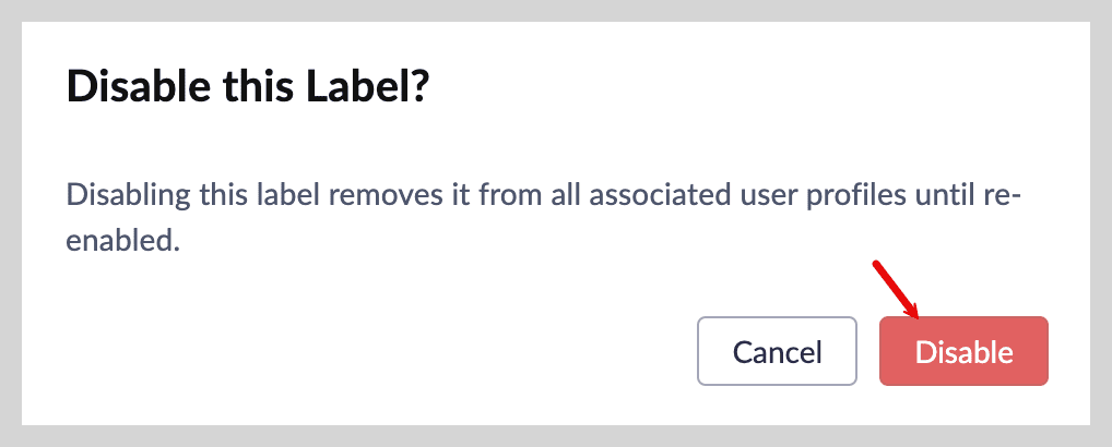 すでにユーザーが割り当てられているラベルを無効にすると、再度有効にするまで、そのユーザーの権限には表示されなくなります。