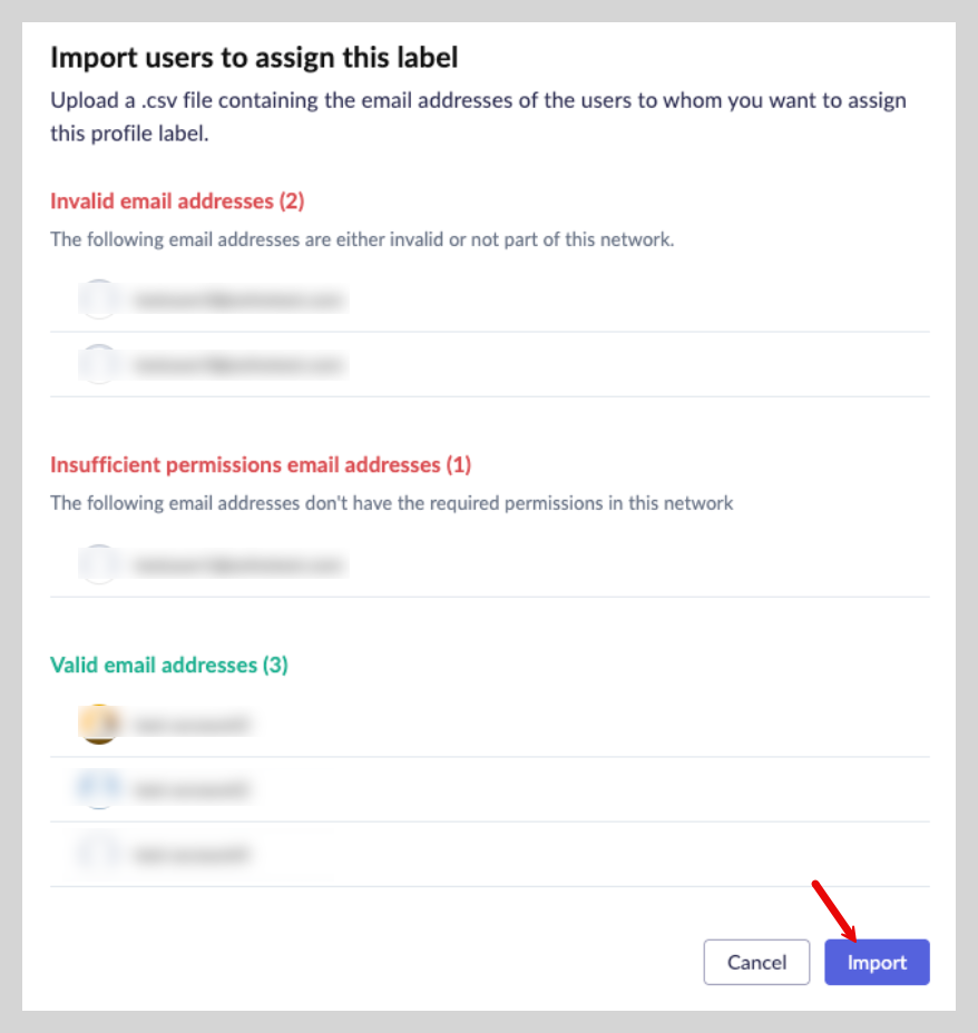 このラベルを割り当てたいユーザーのメールアドレスが含まれているファイルを選択します。インポート処理がすぐに開始されます。