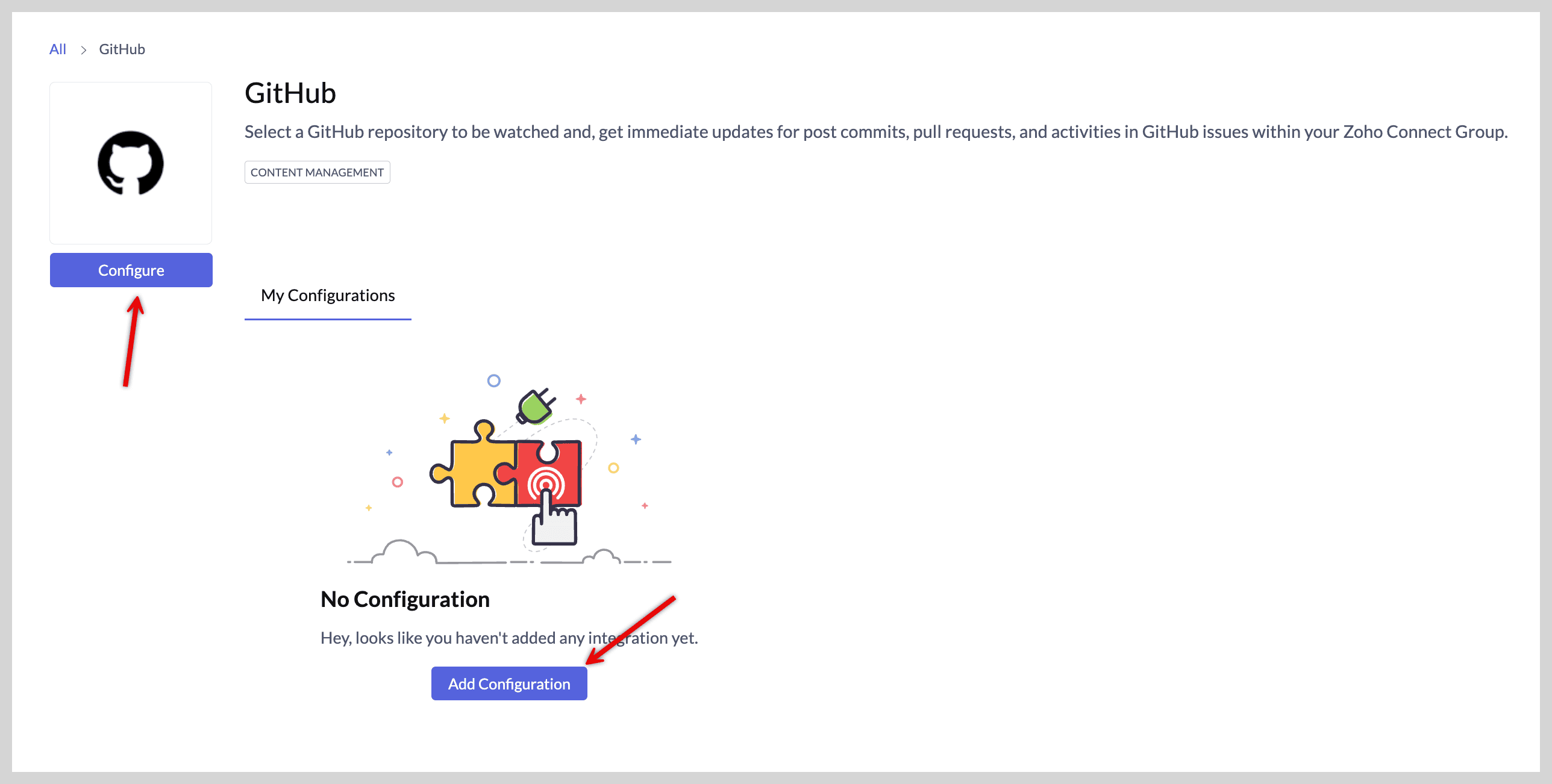 GitHubをZoho Connectと連携すると、GitHubにおけるコードの変更、プルリクエスト、課題に関する最新情報をZoho Connectのグループに共有できます。