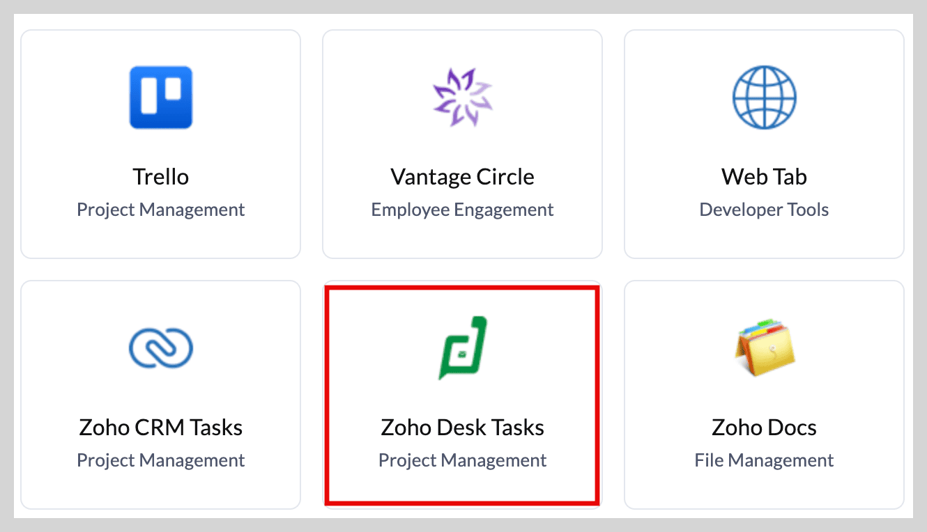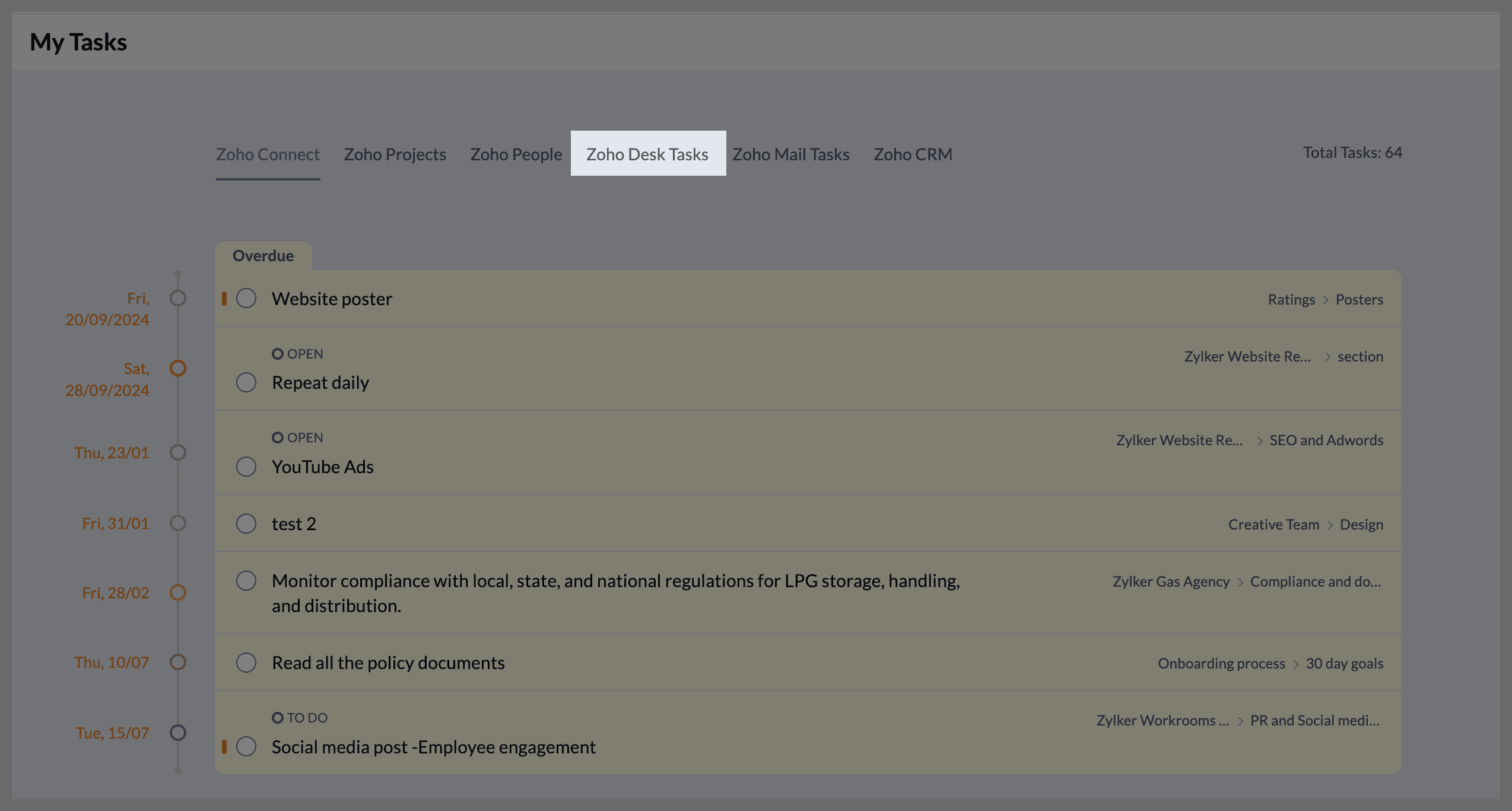 Zoho Connect で Zoho Desk タスクを表示するには: