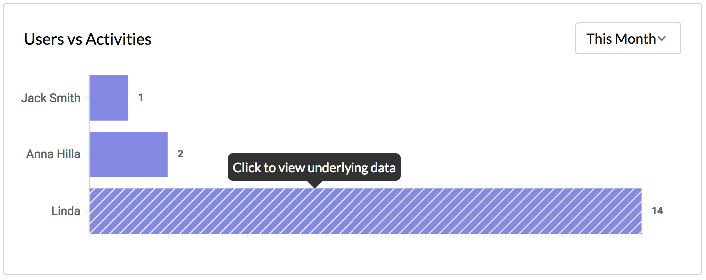 「概要」セクションには、トップの活動およびユーザーvs活動のグラフが表示されます。その下の表には、「概要」セクションに「個人の活動」が日時順にリストアップされています。
