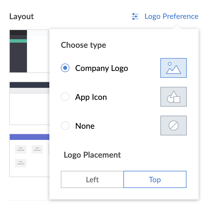 会社のロゴの配置も選択できます。会社名の左側に配置するか、会社名の上に配置するかを選択できます。