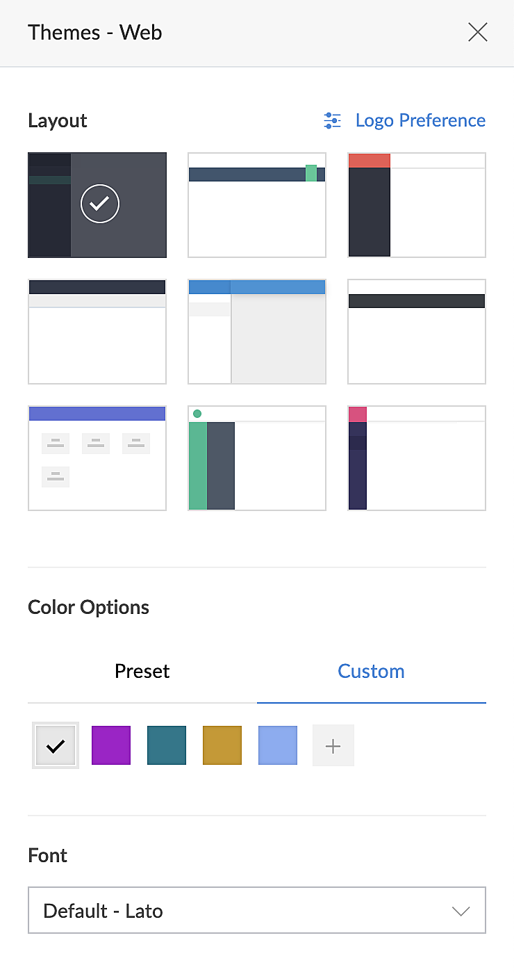 3. カラーセクションの下で、利用可能なプリセットカラーのいずれかを選択するか、アプリケーションテーマ用のカスタムカラーを作成できます。