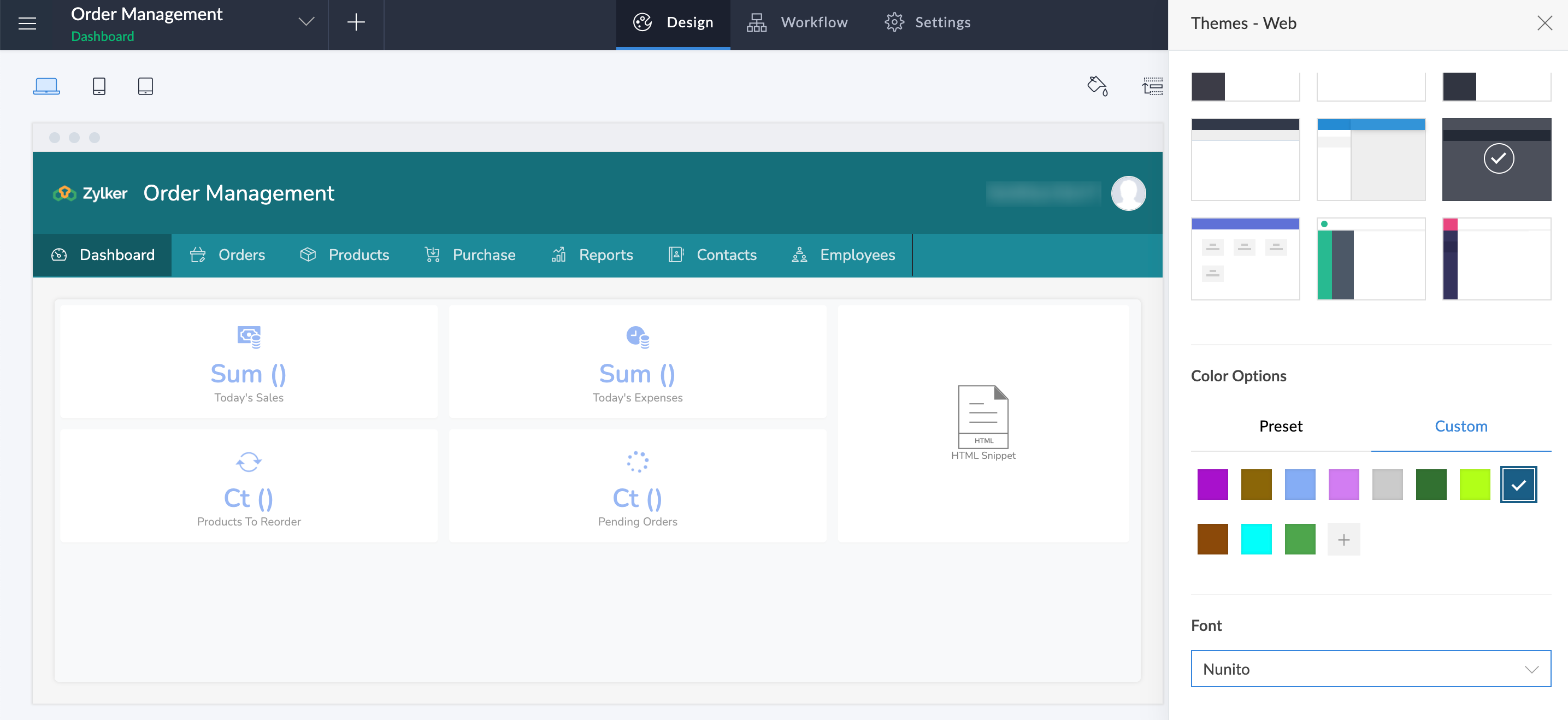 注:Creatorアカウントでは、アプリ、レイアウト、デバイス間でカスタムカラーを使用できます。