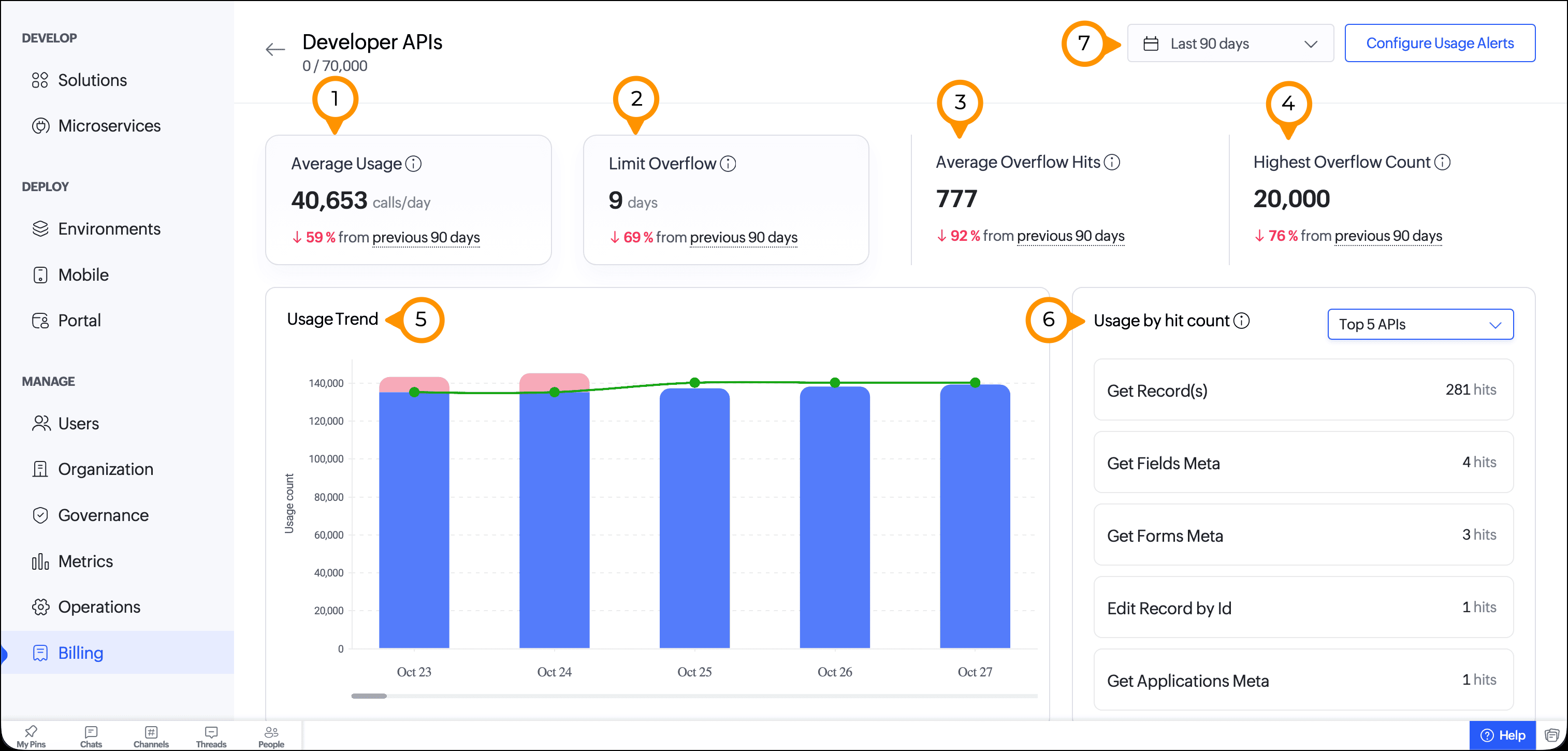 メモ : Creator API を使用して行われ、Creator アカウント内の処理を実行する Developer API コールは、Developer API と外部コールの両方としてカウントされます。