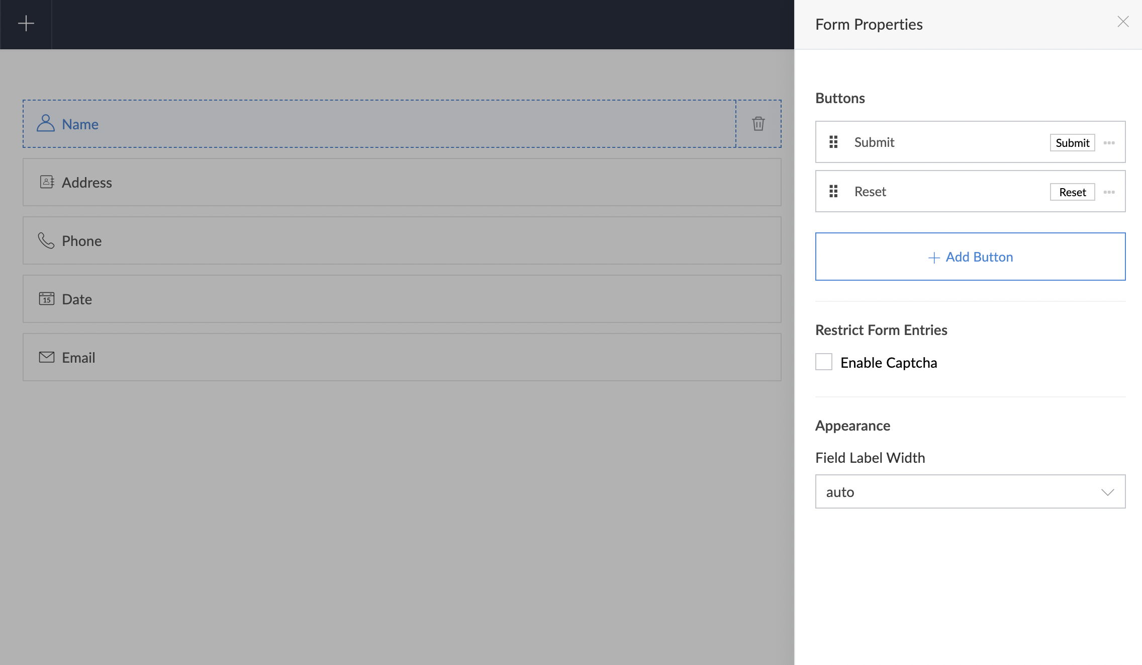 9. デフォルトでは、送信およびリセットボタンが表示されます。