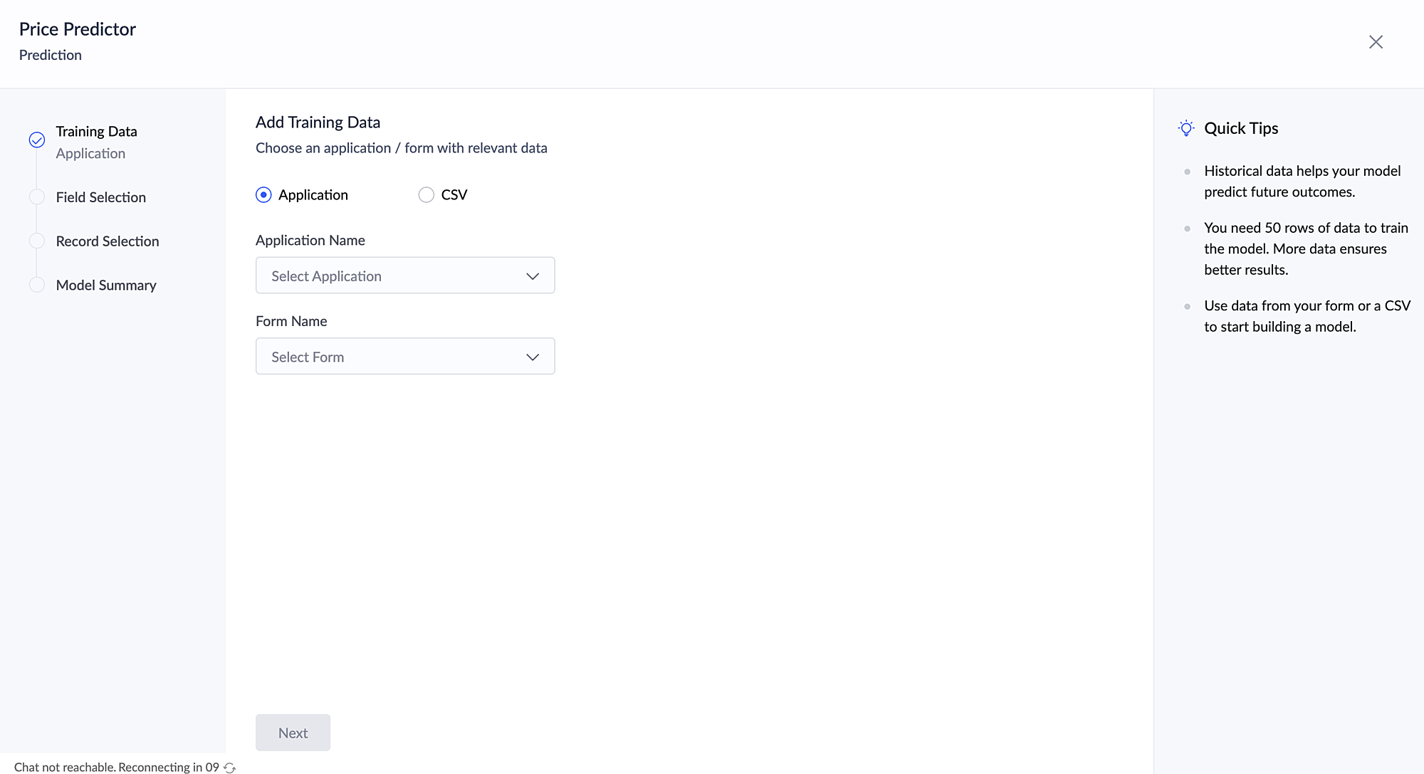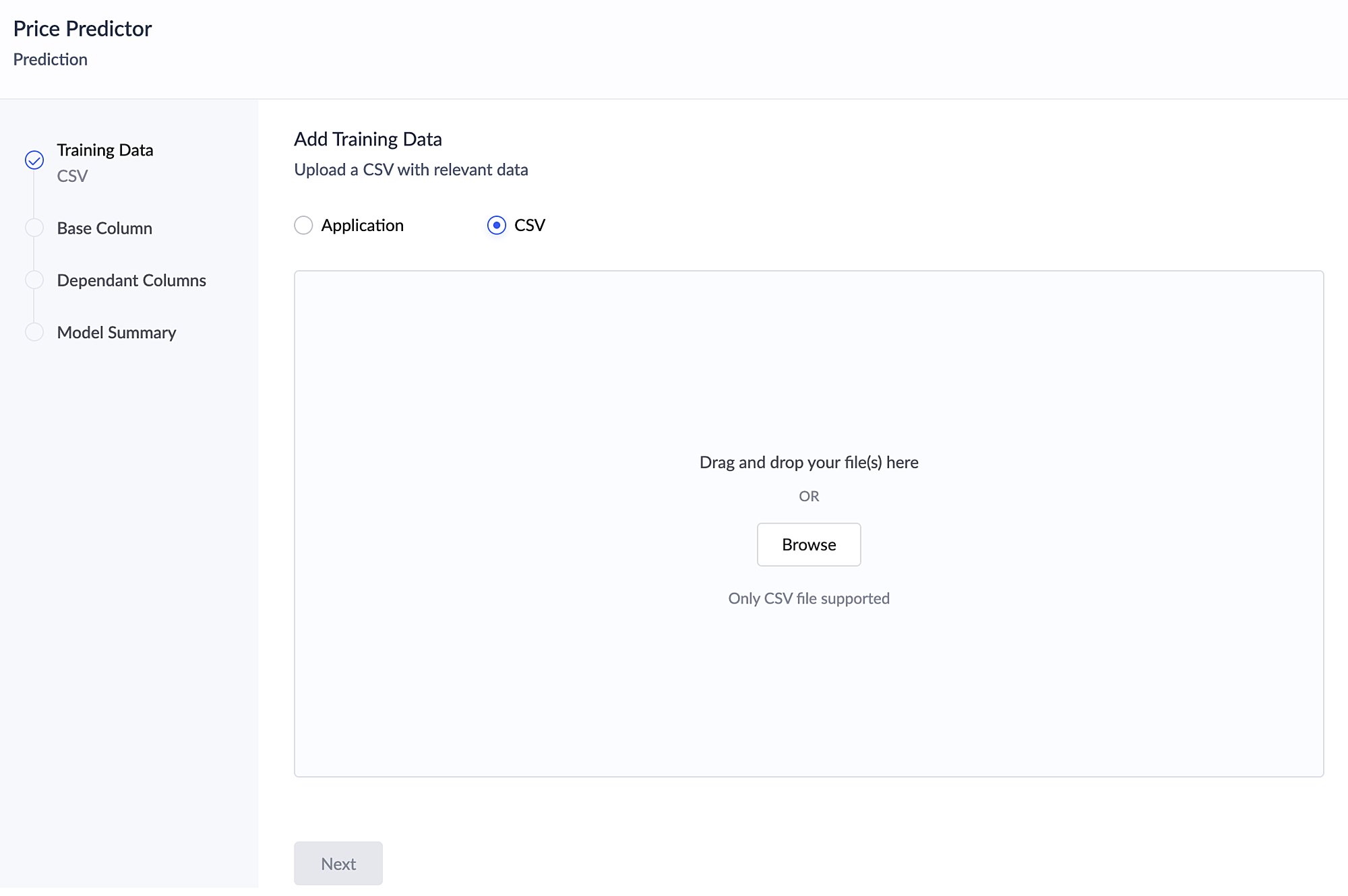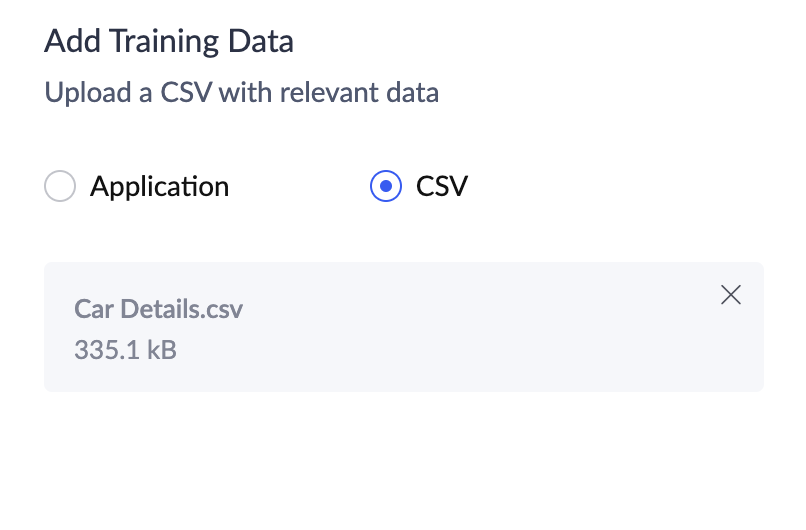 アプリケーション内に十分なデータがない場合でも、データがCSV形式のファイルに保存されていれば、それを予測モデルのトレーニングデータとして使用できます。