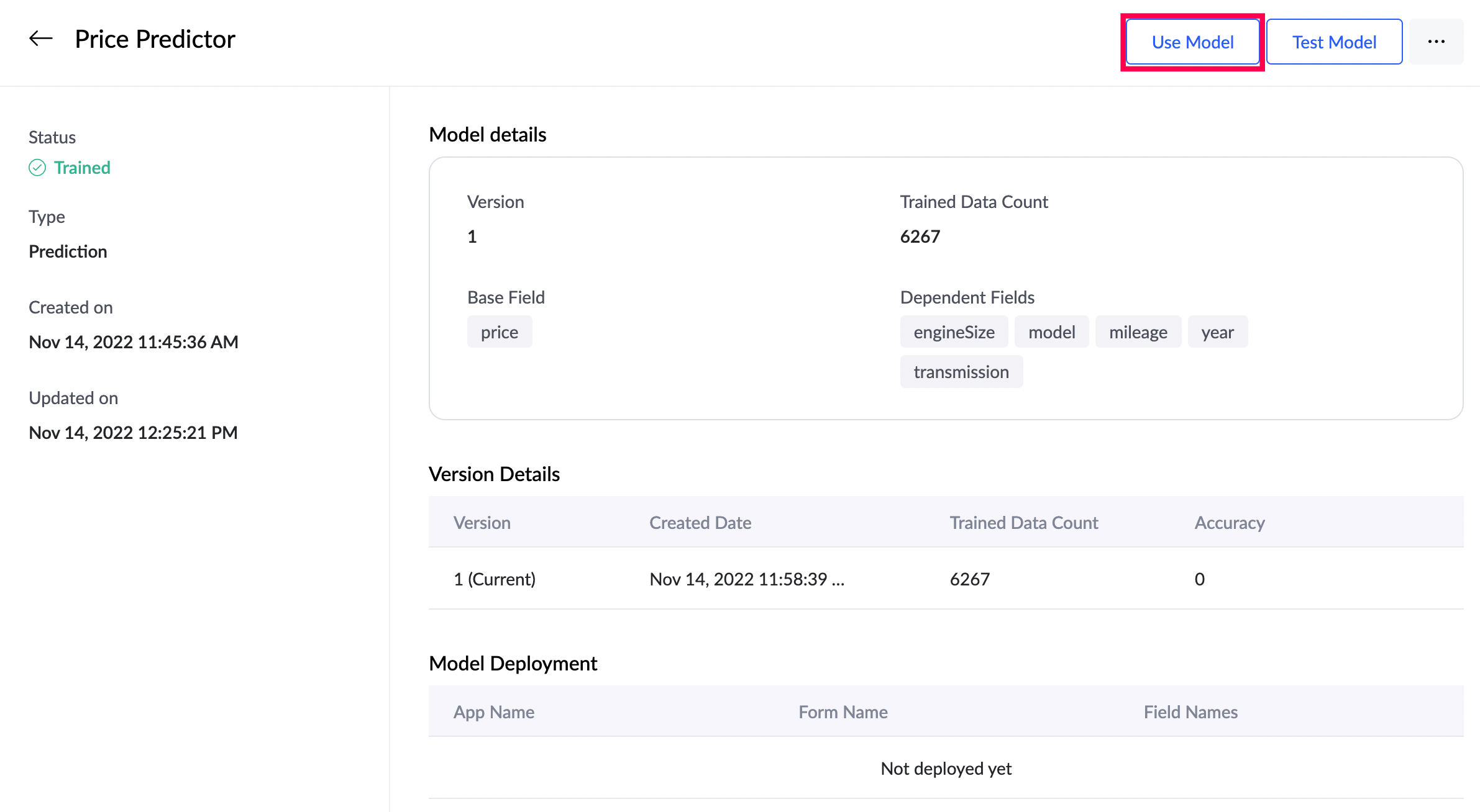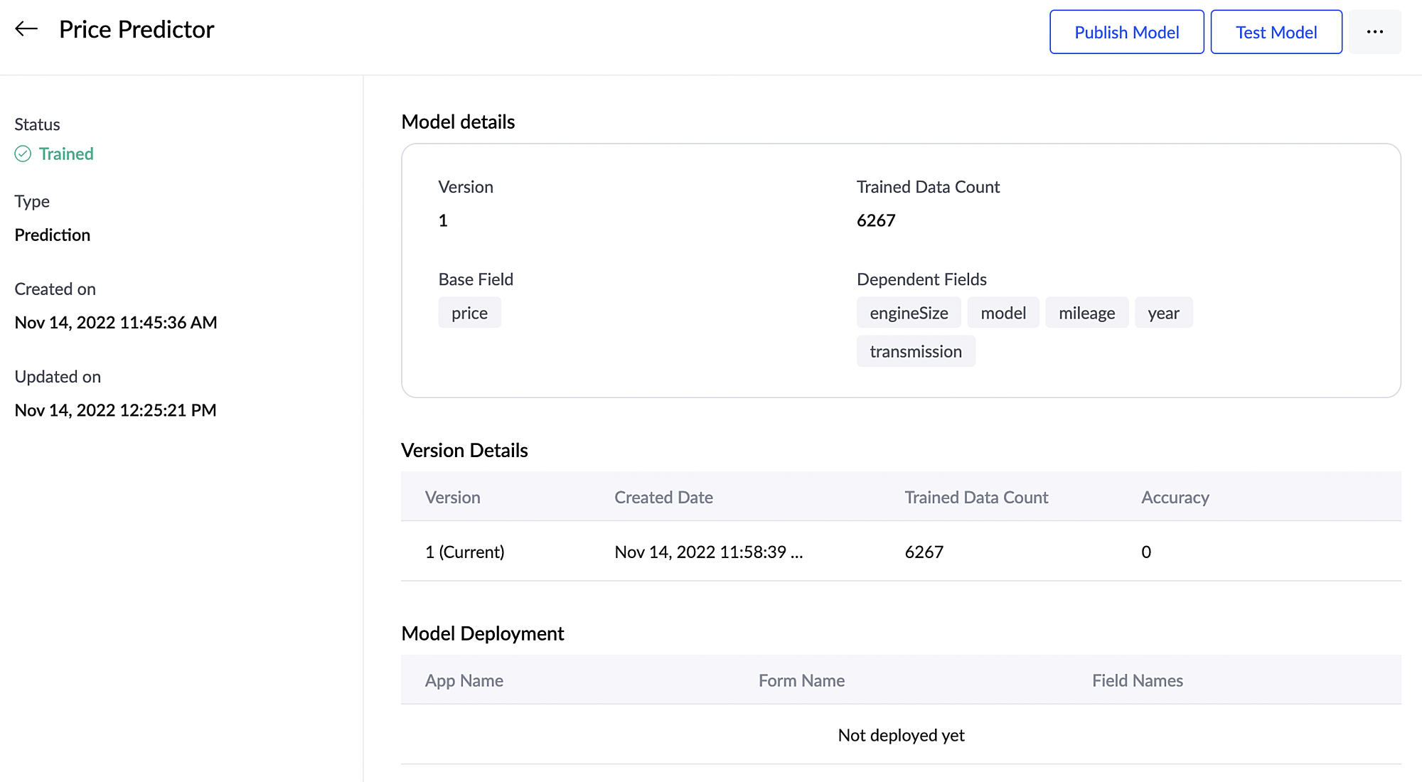 モデルをトレーニングした後、アプリケーションでデプロイできるように公開する必要があります。開発者やユーザーがPrediction Modelを利用し、予測を開始できます。