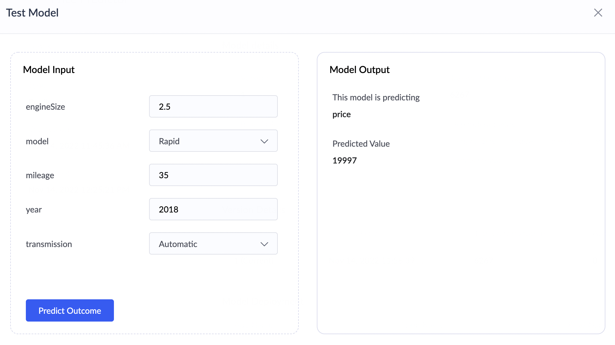 トレーニング後、任意でモデルの信頼性をテストし、アプリケーションに導入する前に確認できます。この操作は必須ではありませんが、モデルがデータパターンを正しく解析し、高い精度で結果を予測できているかを確認するために役立ちます。