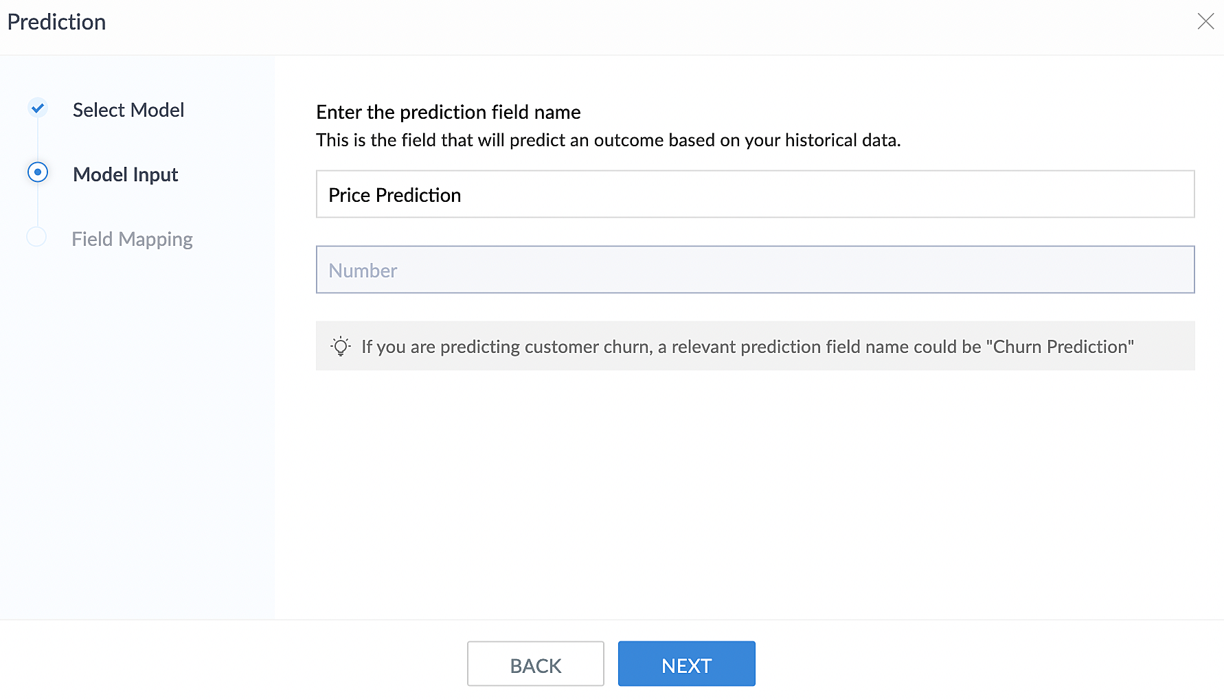 Predictionモデルを設定するには、次の4つのステップに従ってください。