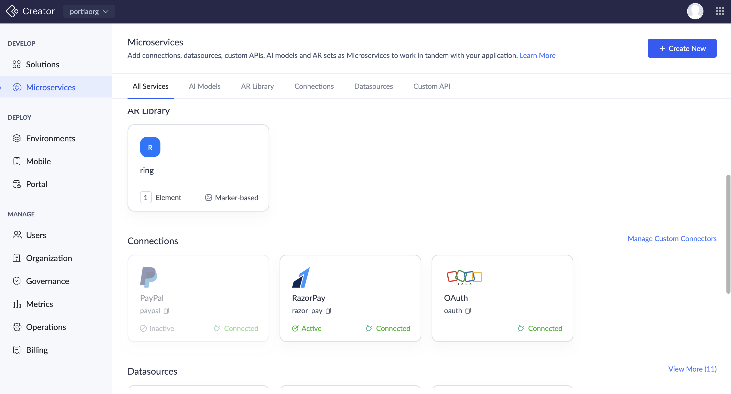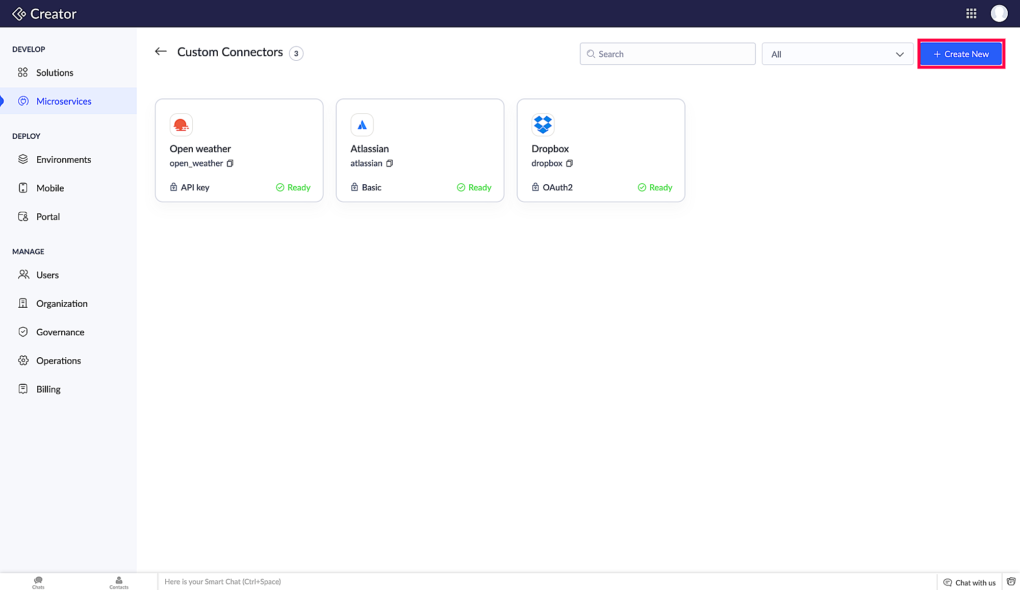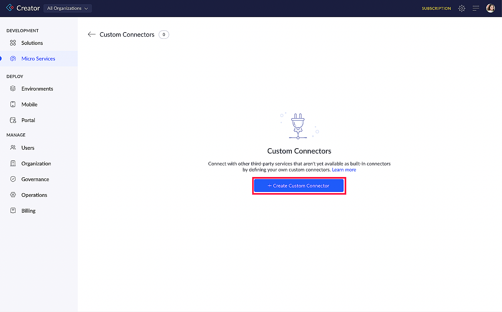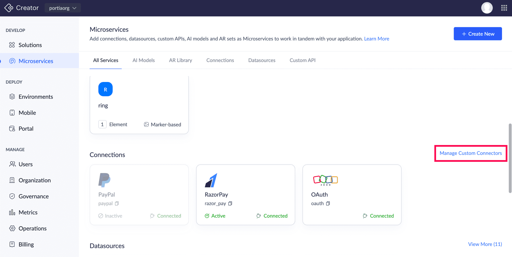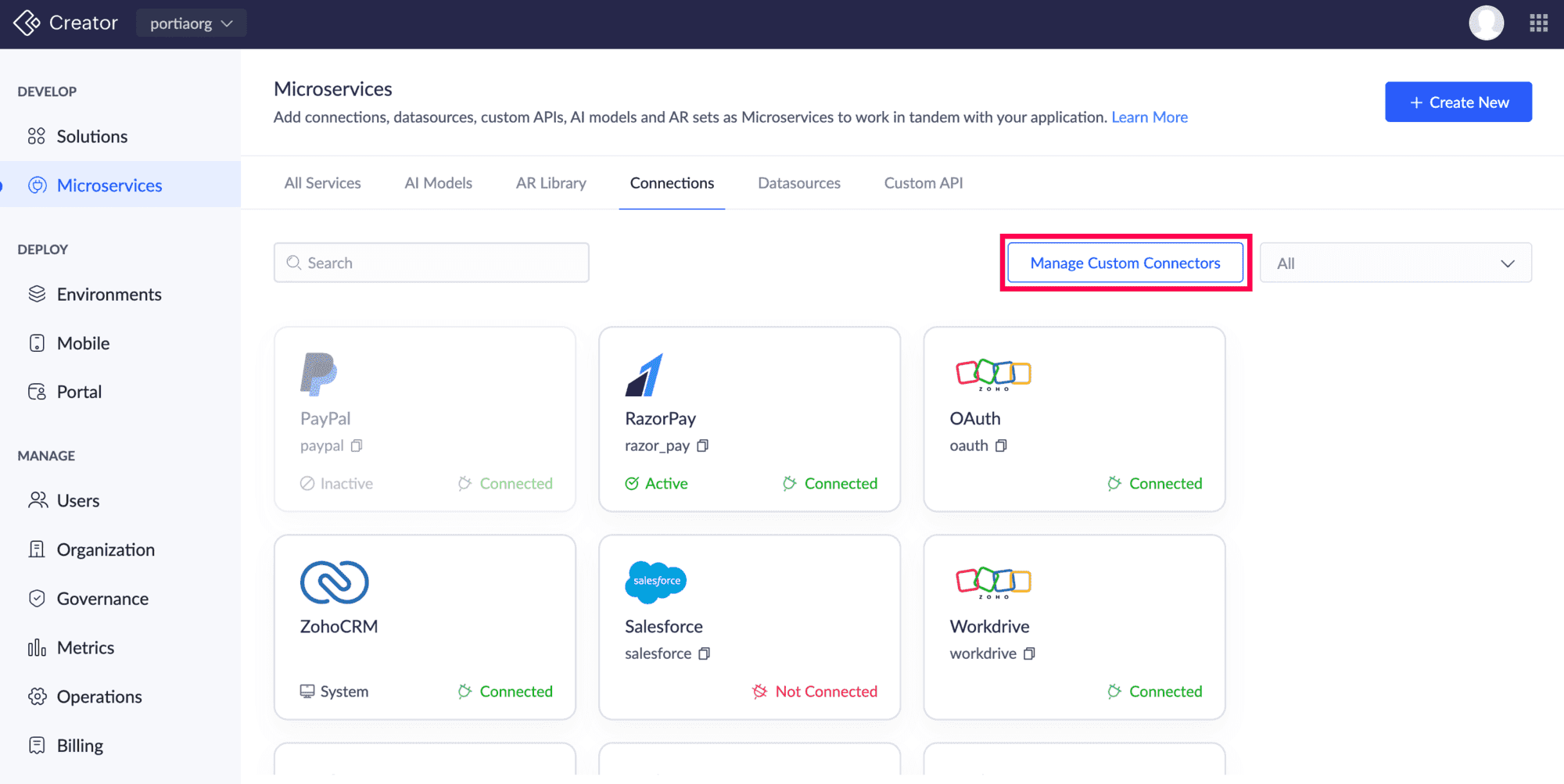 ii) 管理 カスタム Connectorsをクリックします。