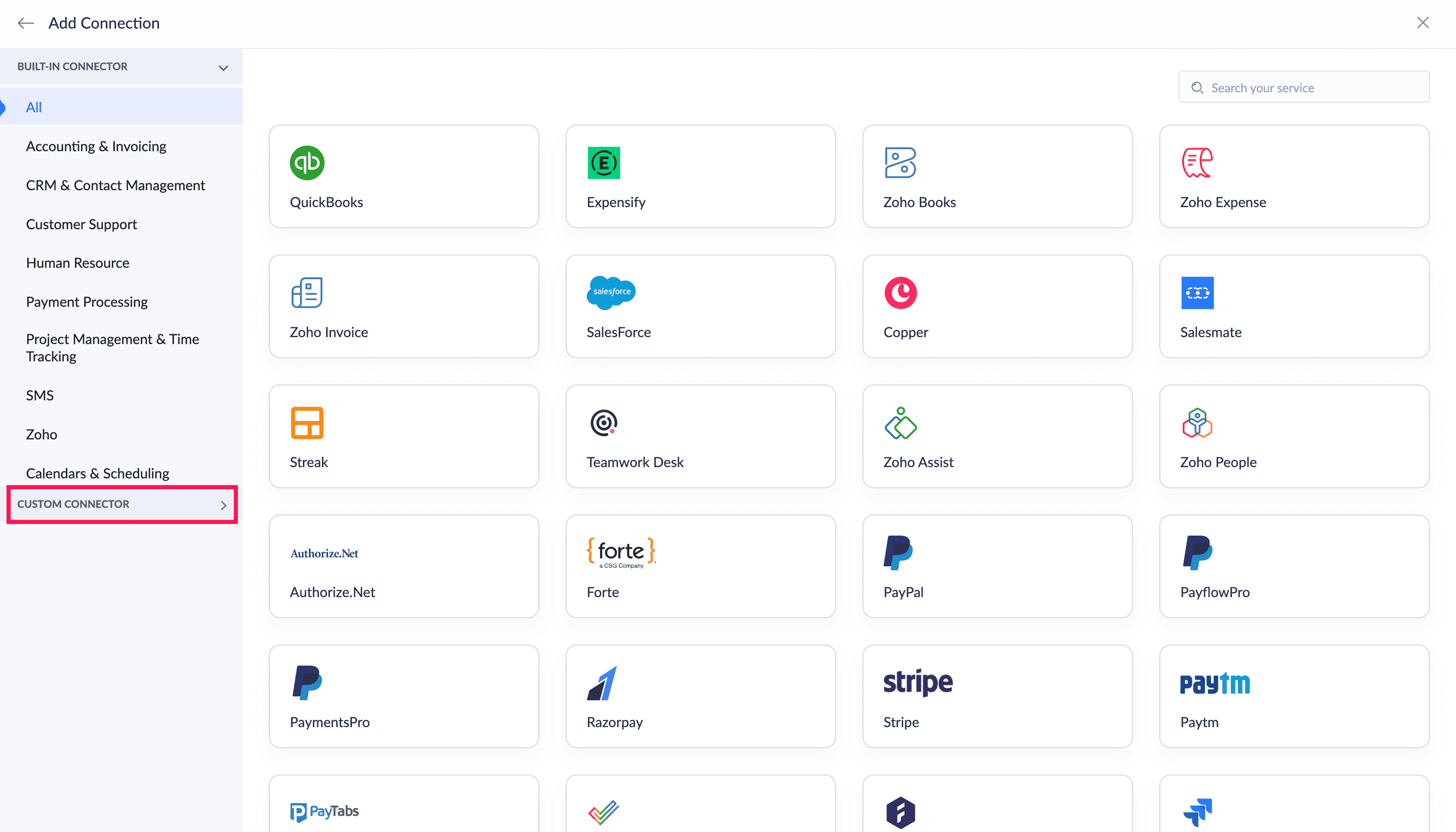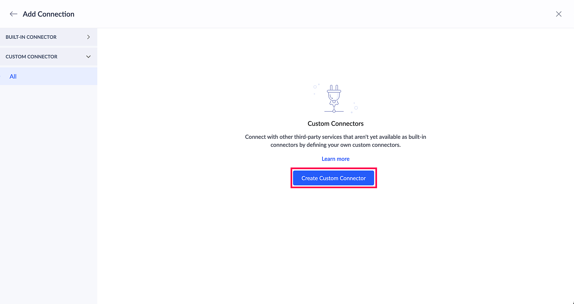 左側のペインで カスタム コネクターカテゴリをクリックします。