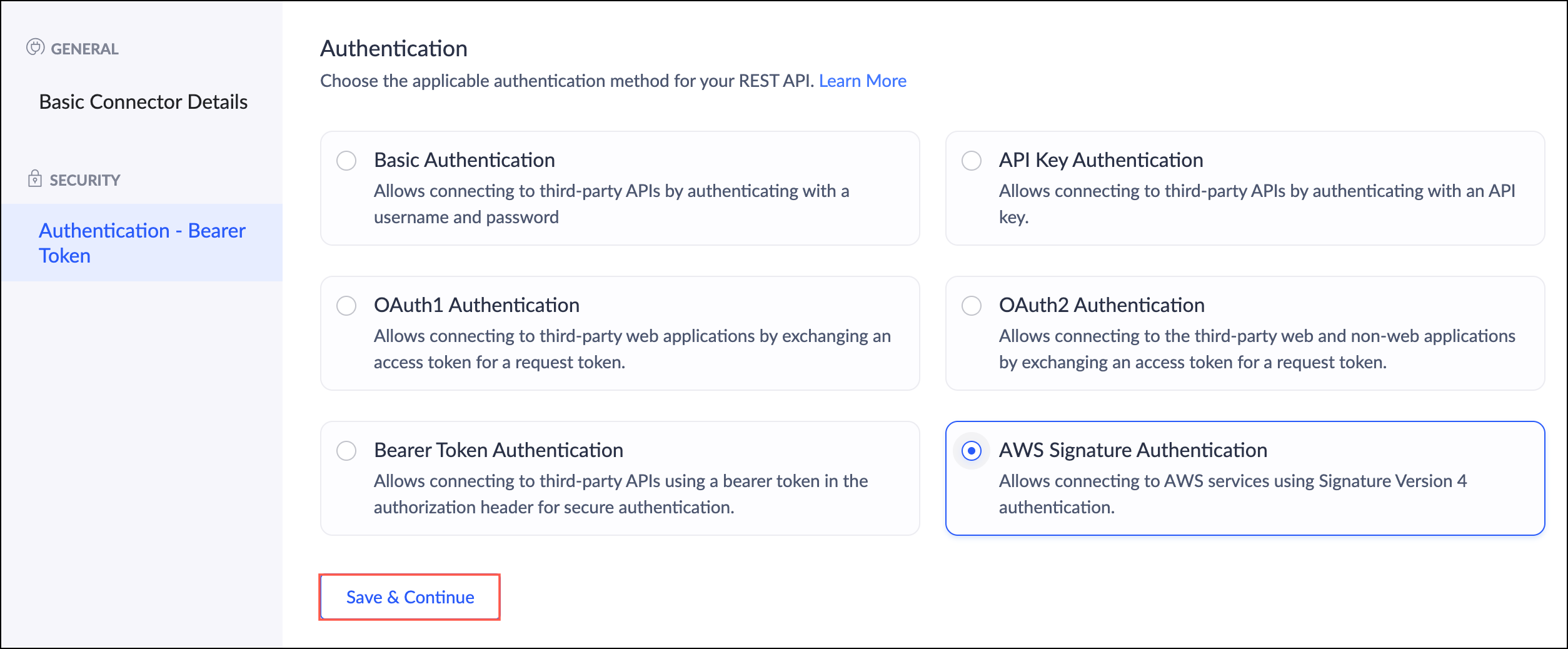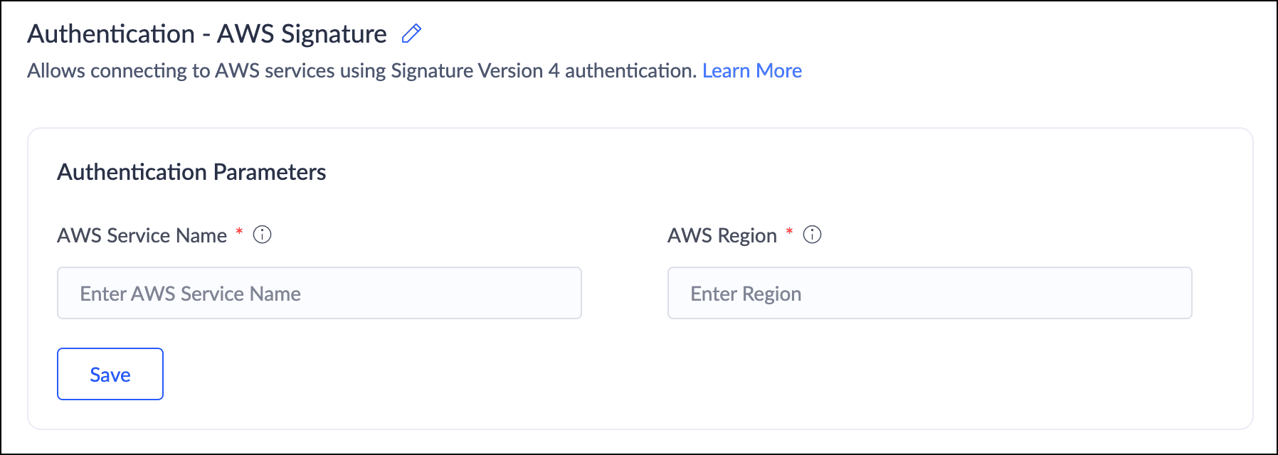 この認証種類は、署名バージョン4認証を利用してAWSサービスへの接続を可能にします。