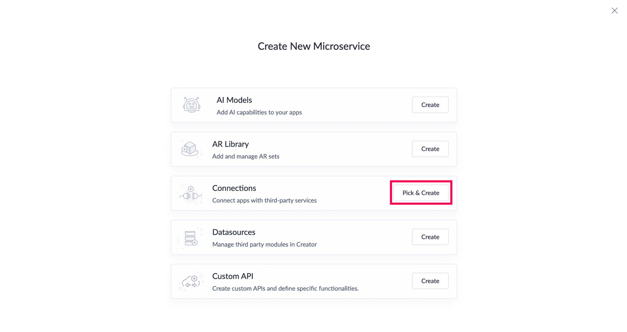 「 Connection 」を選択し、 Pick & 作成をクリックします。