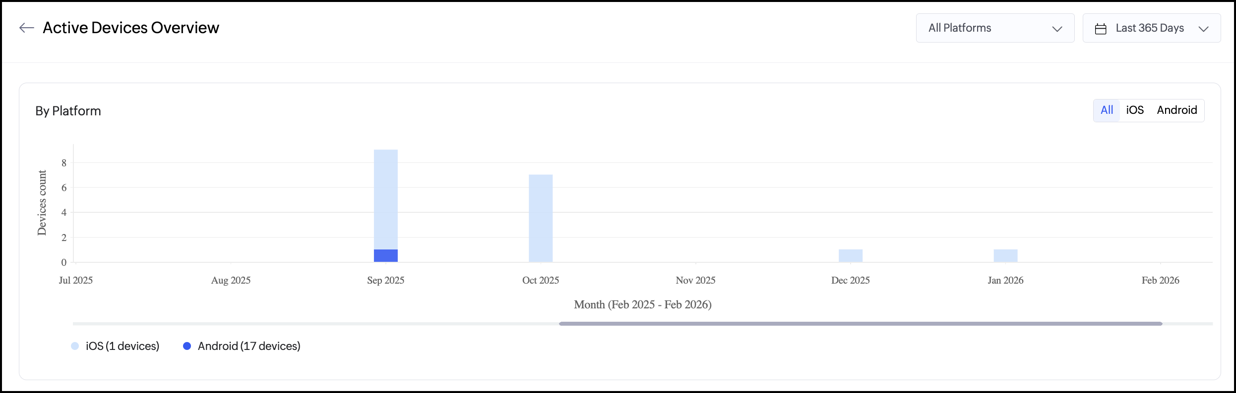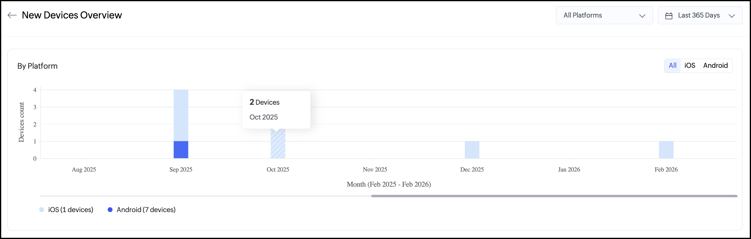 - すべて、iOS、Android フィルターを使用して、各プラットフォームで新たに追加されたデバイスを表示します。