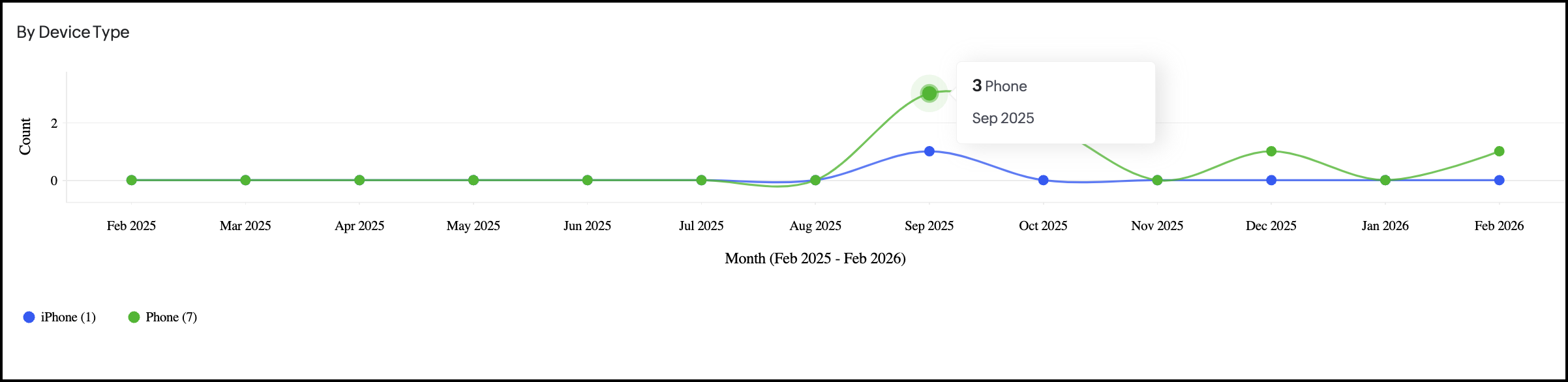 - データポイントにカーソルを合わせると、その日付におけるデバイス数と変化率(%)が表示されます。