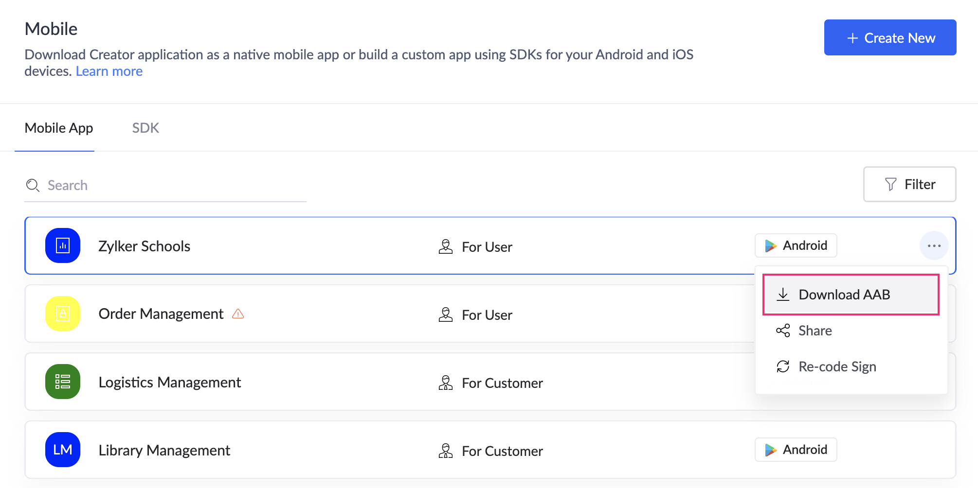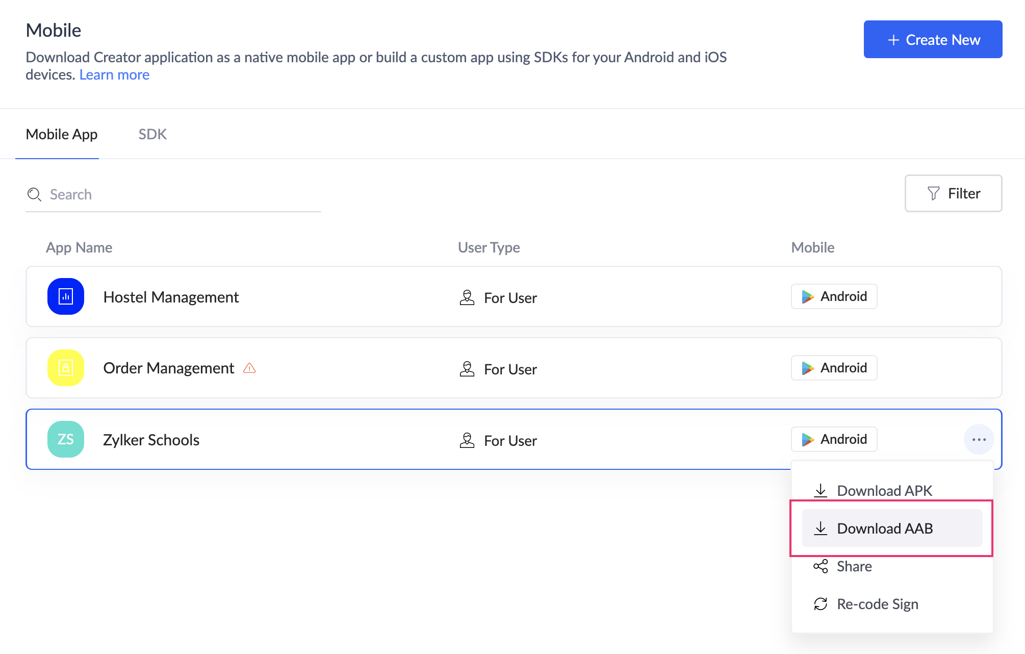 Creatorでは現在、Android向けに2種類のファイル形式をサポートしています。