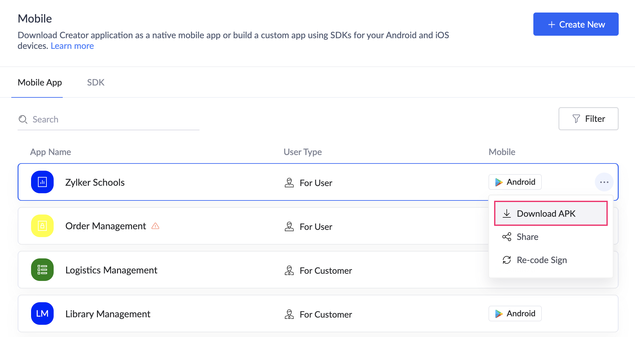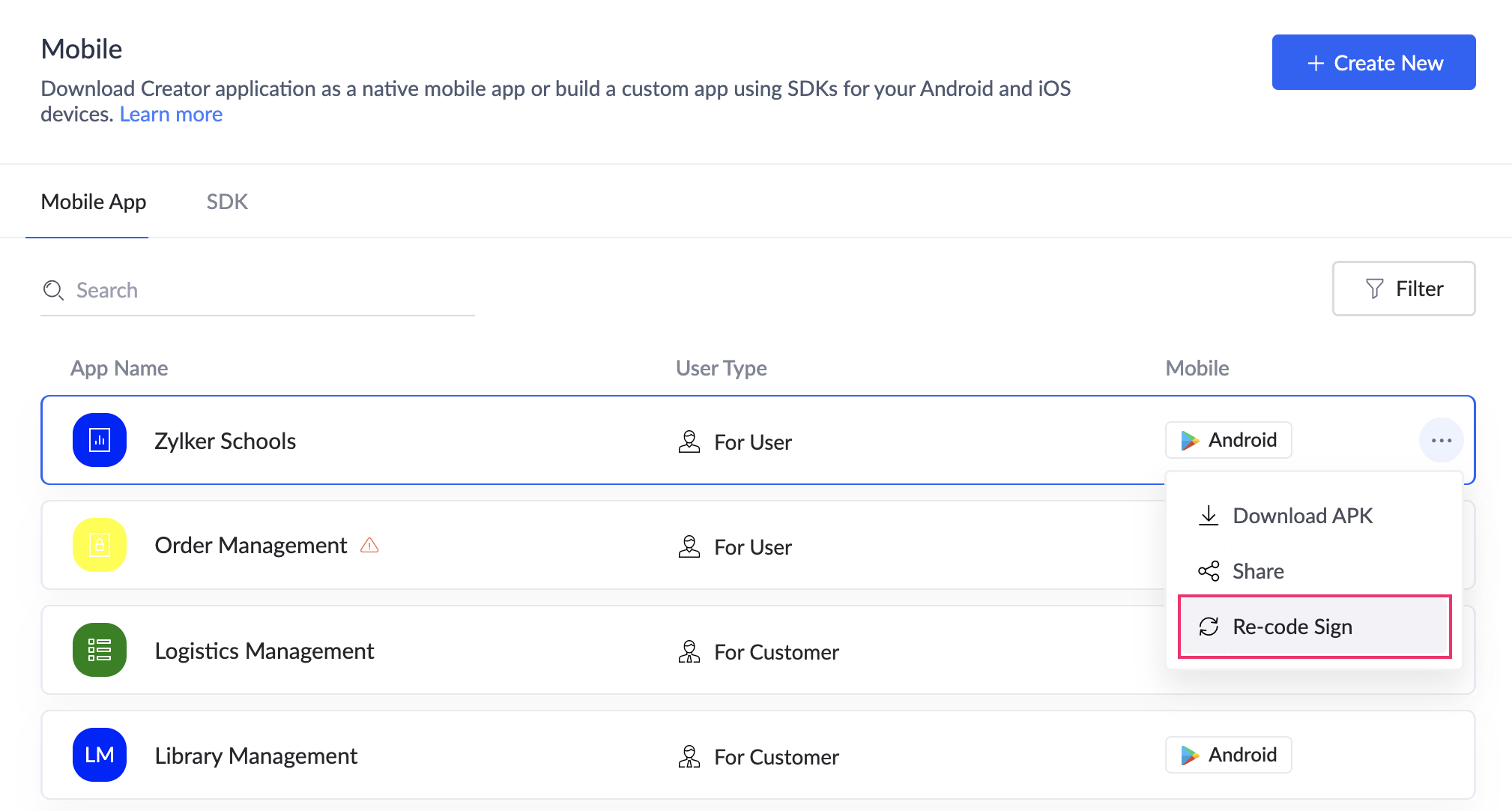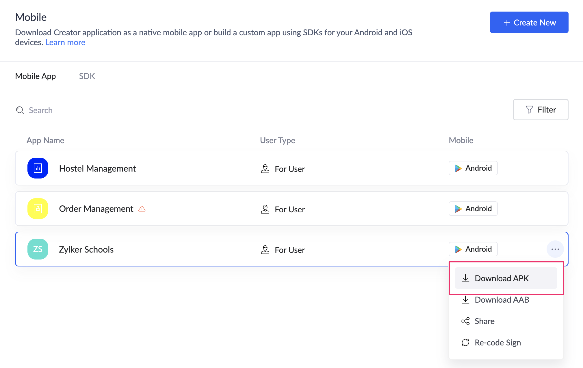 以下のいずれかのファイルタイプを使用して、Androidアプリのコード署名が可能です。