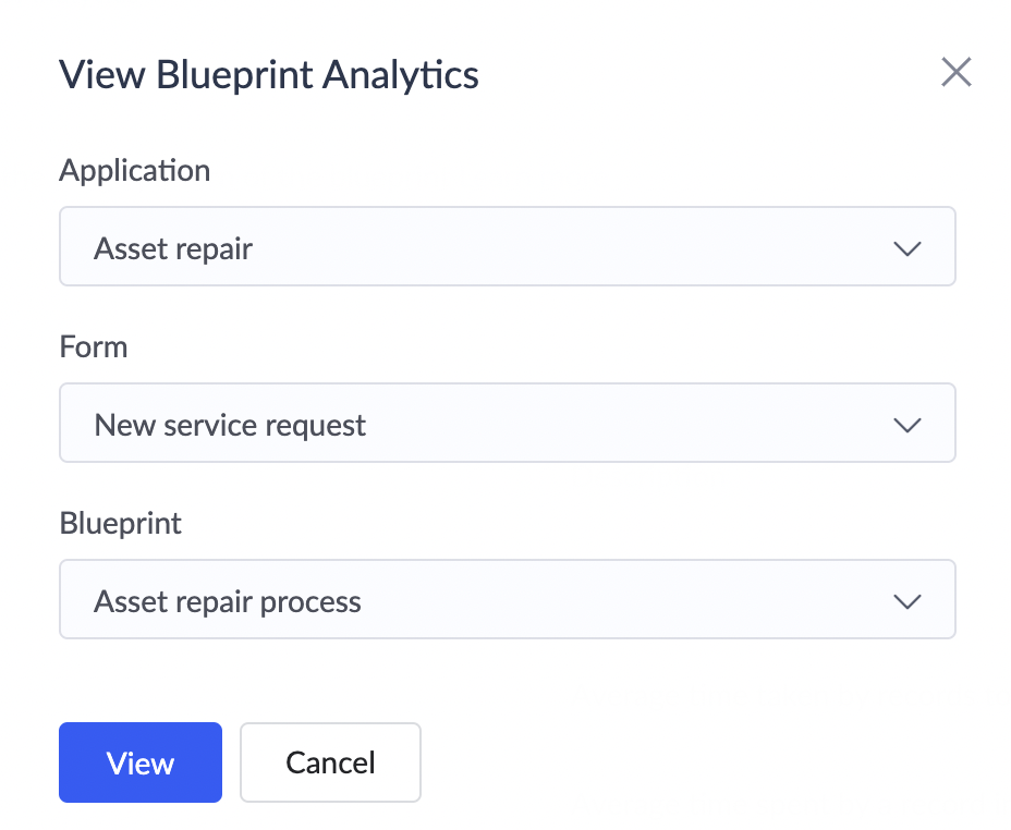 ポップアップで、アプリケーション、フォーム、およびブループリントを選択し、チャートを生成するには、[表示]をクリックします。