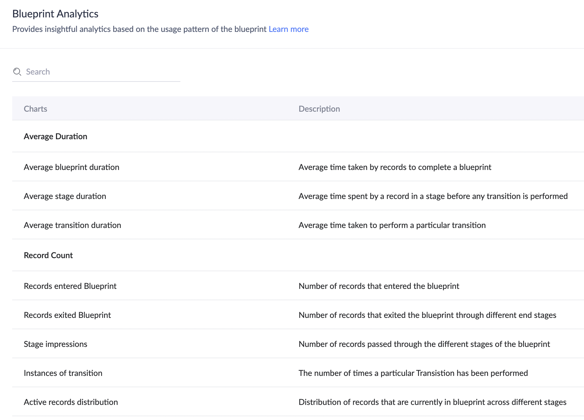 ブループリントのアナリティクスページが表示されます。このページには、様々なチャートのリストがあります。