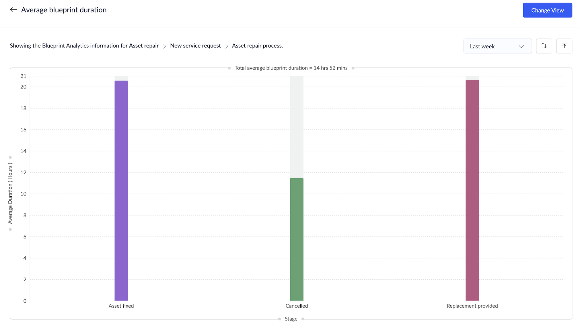 「変更ビュー」ボタンをクリックして、別のチャートを表示します。 ポップアップでは、必要なアプリ、フォーム、ブループリントを再度選択する必要があります。