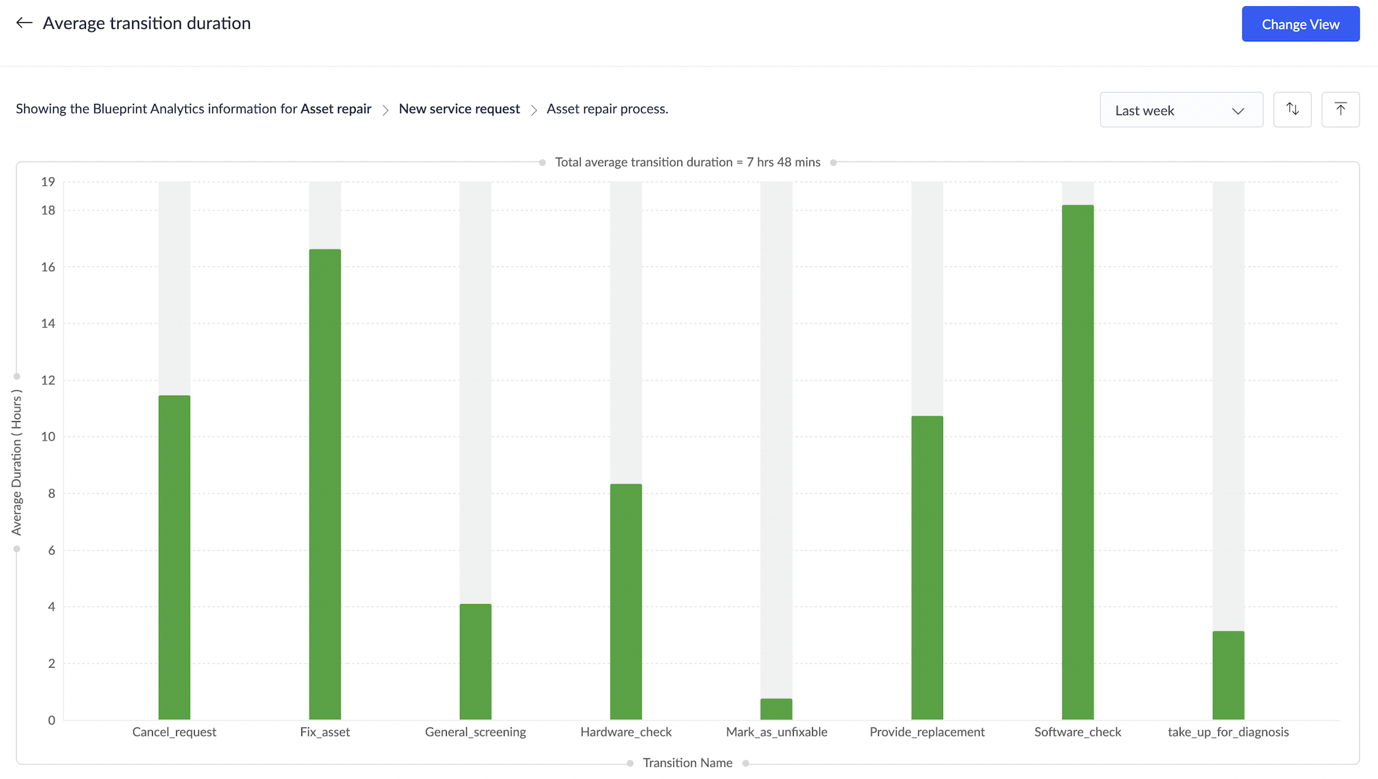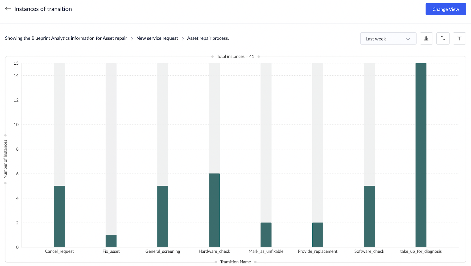 Blueprint分析では、ブループリントプロセスに関する有益な洞察を得られる9種類のチャートをご利用いただけます。