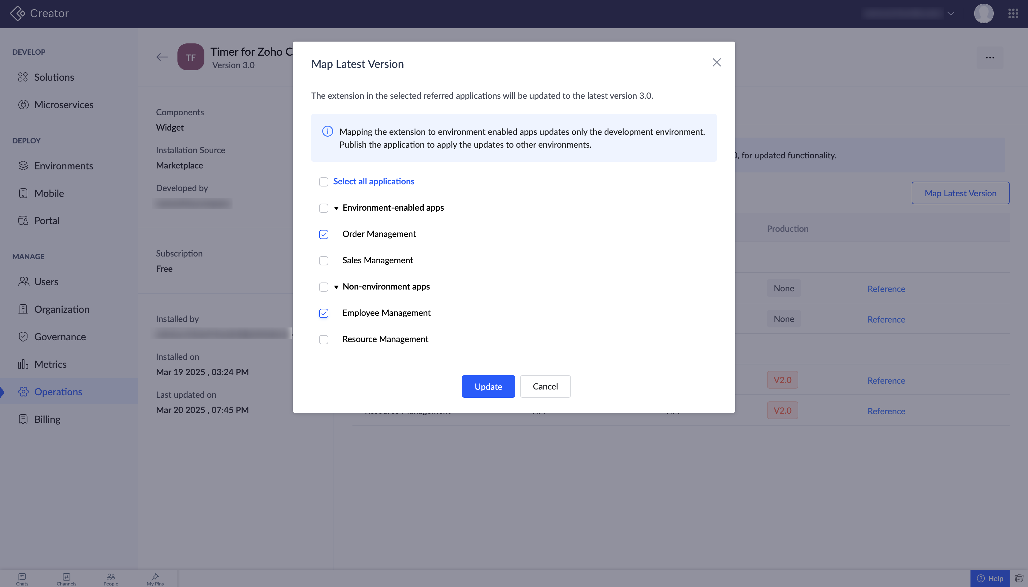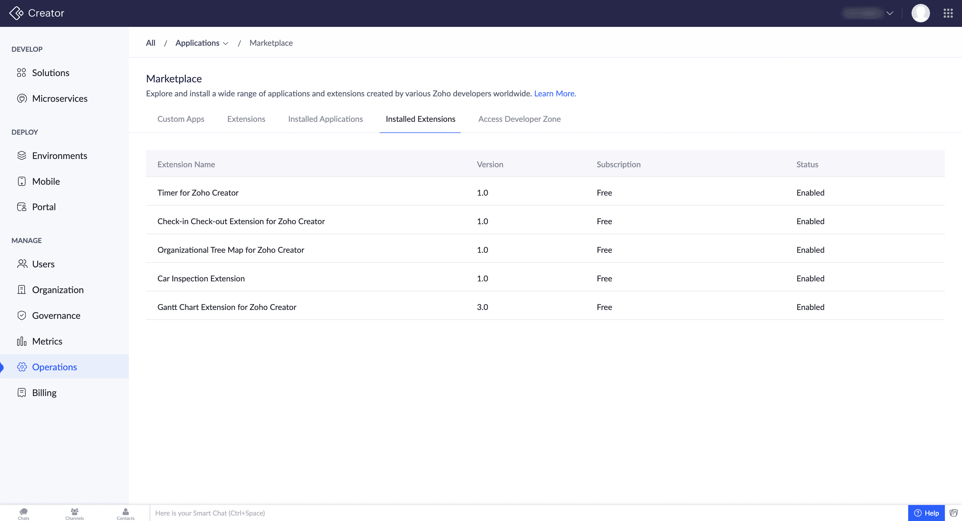 メモ: 拡張機能が無効の場合、インストール済み拡張機能カテゴリー内のWidgets セクションには表示されません。