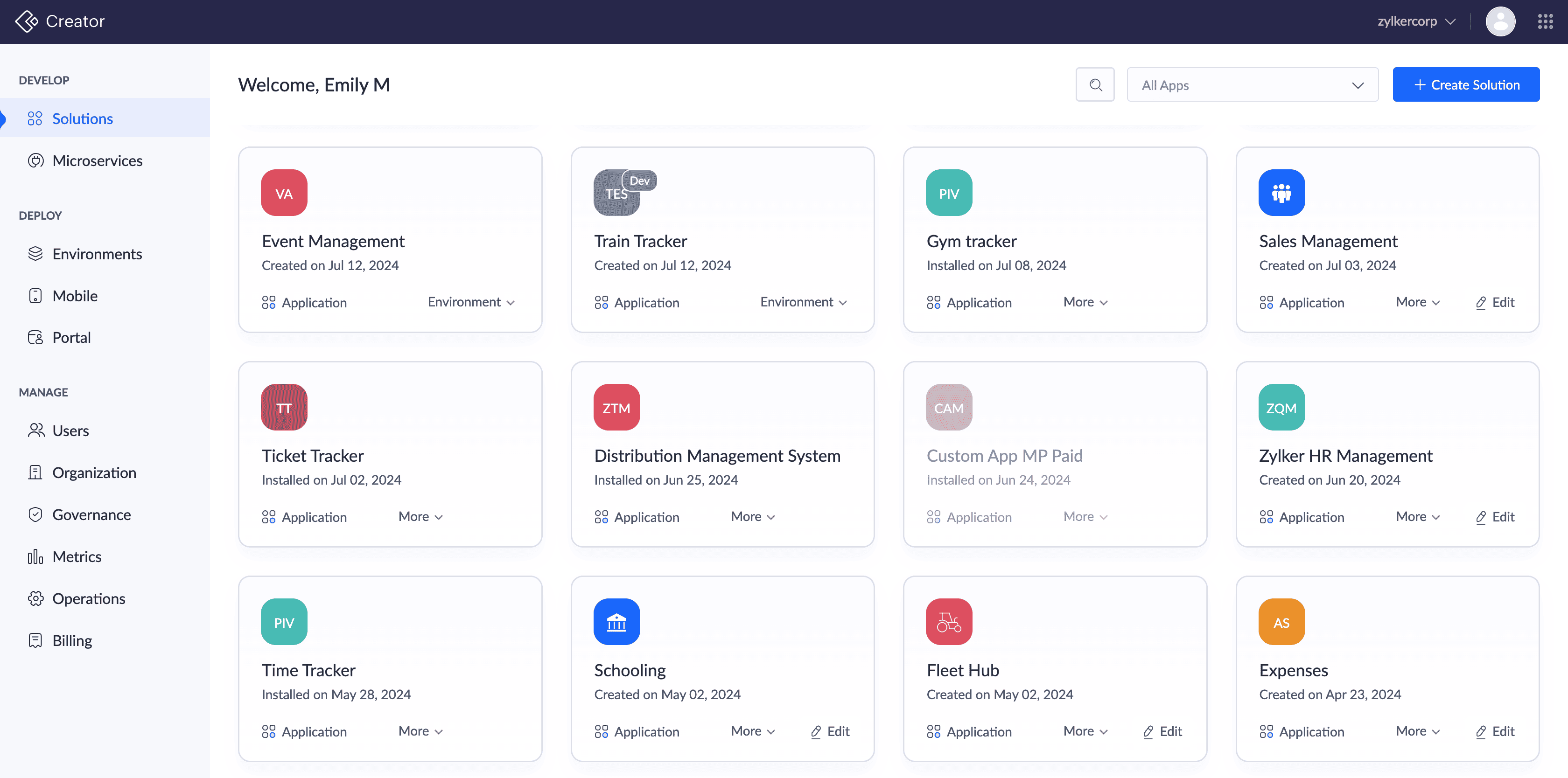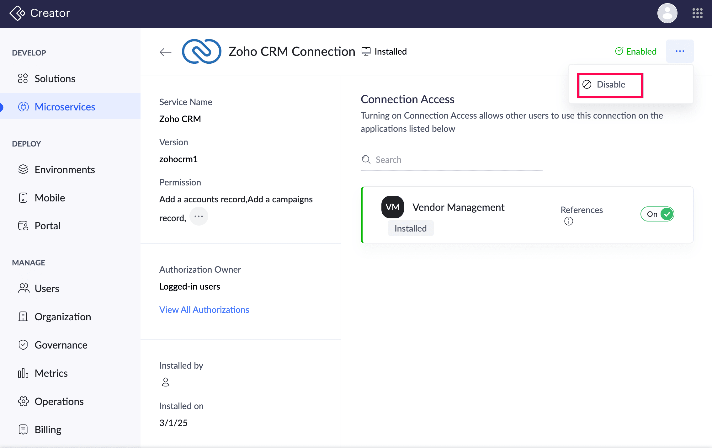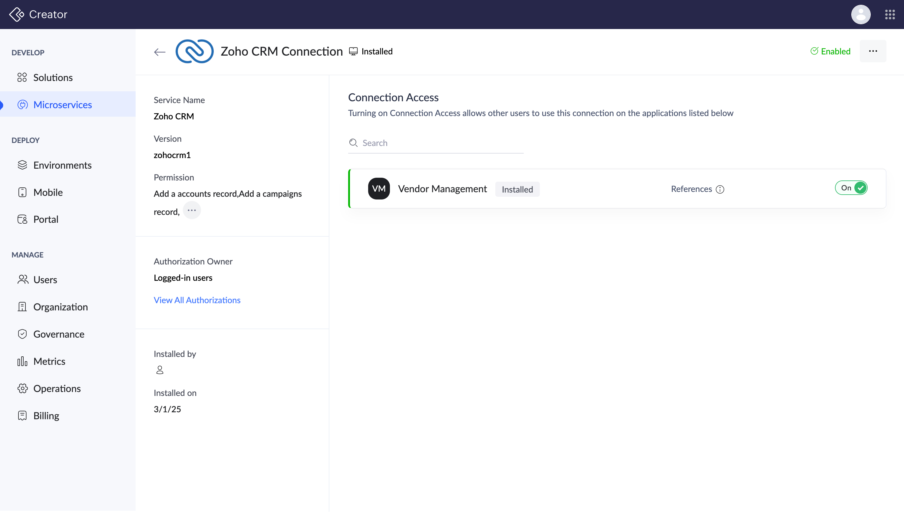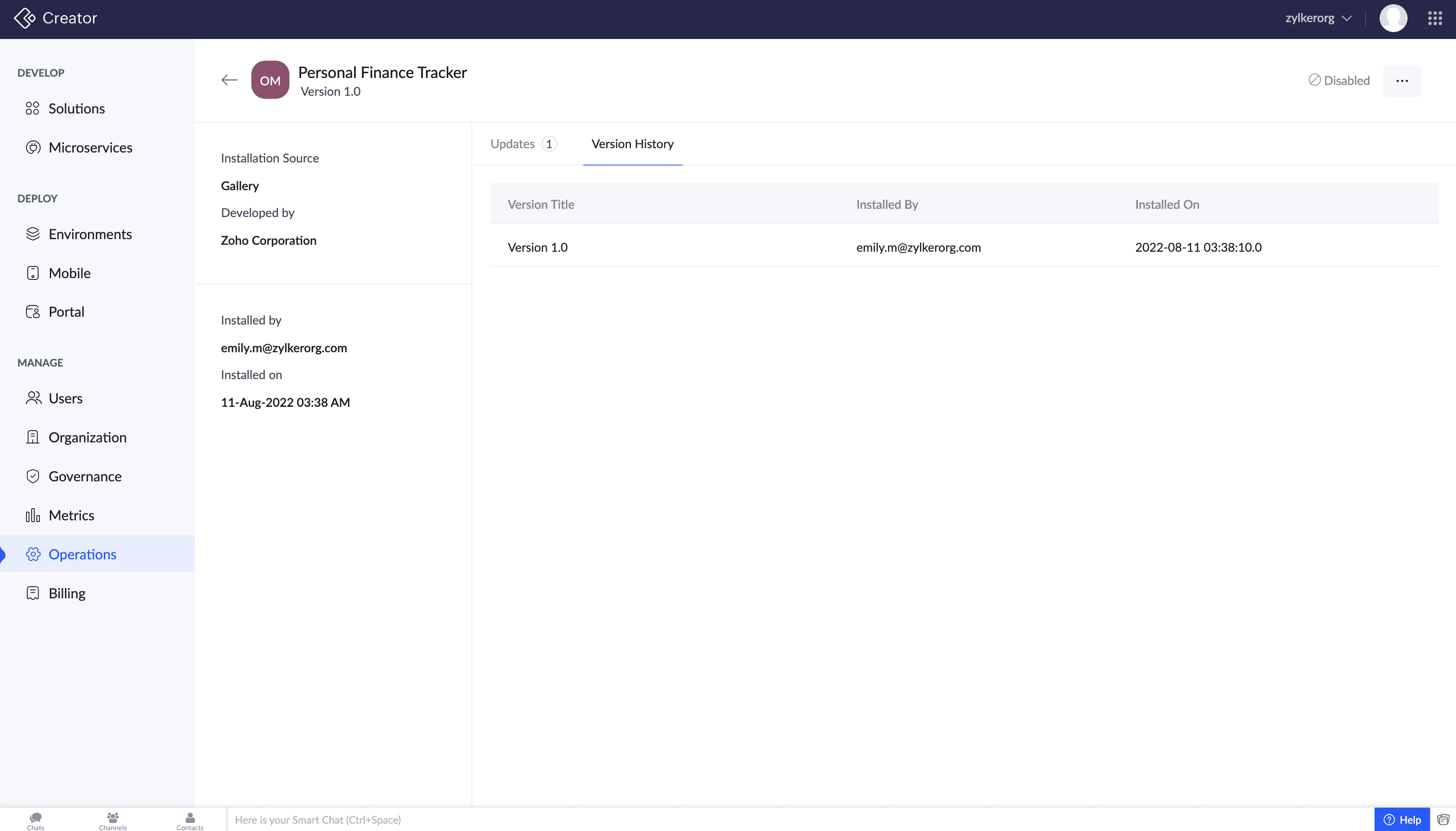 Operations > マーケットプレイス > Installed アプリケーション に移動します。