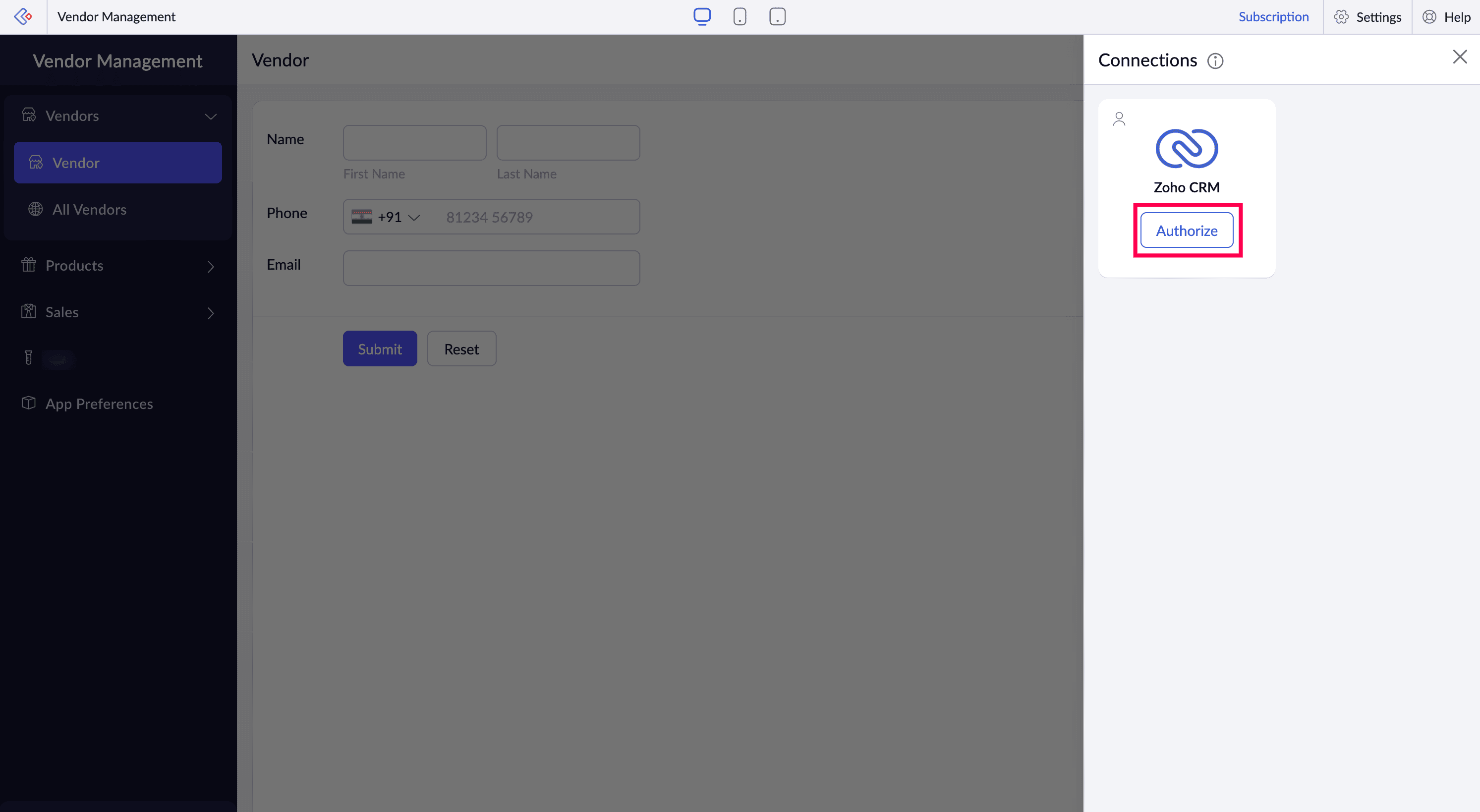 - Zohoアカウント言語: ユーザーのZohoアカウントで設定されている言語に基づき、アプリのUI要素を翻訳します。