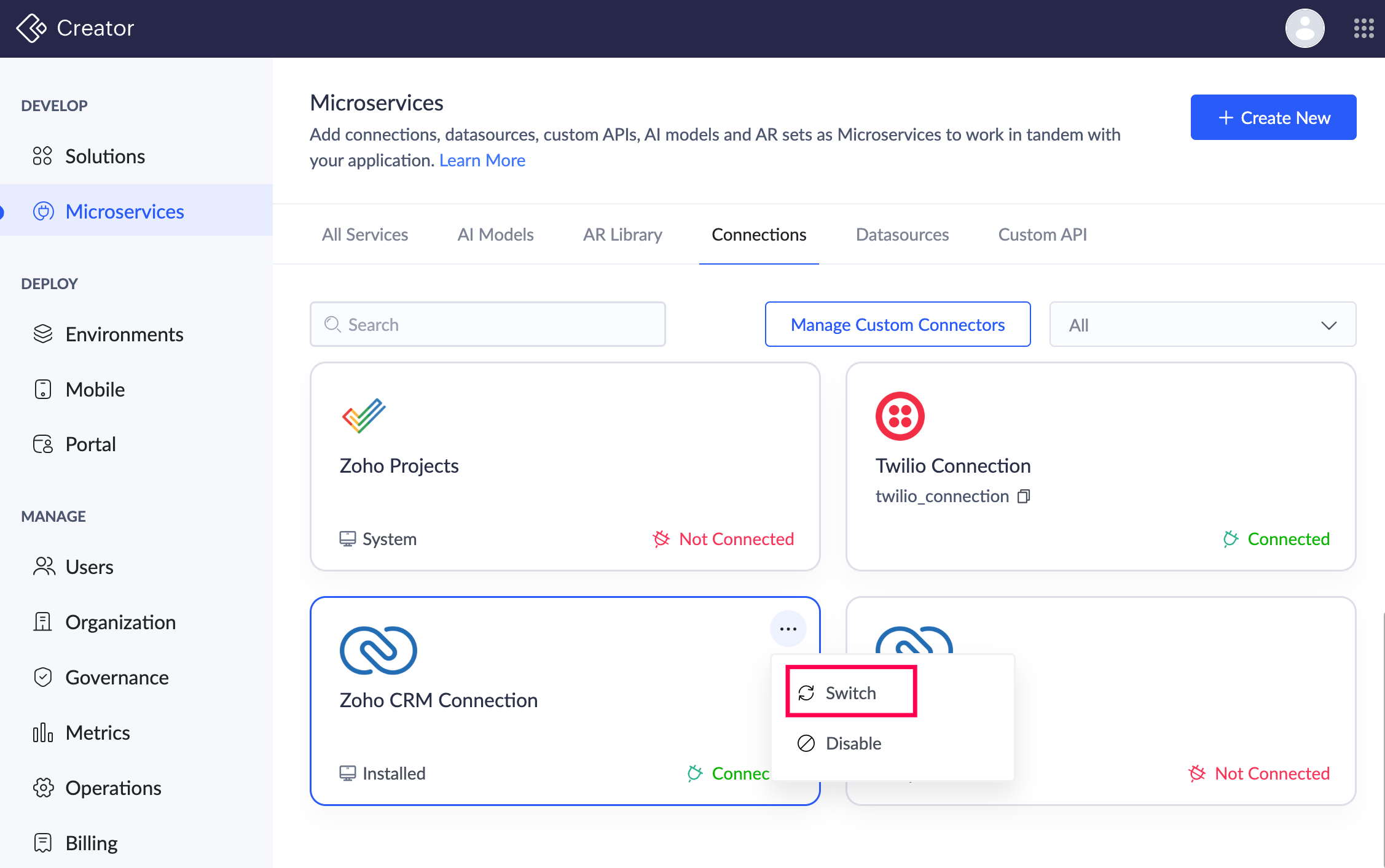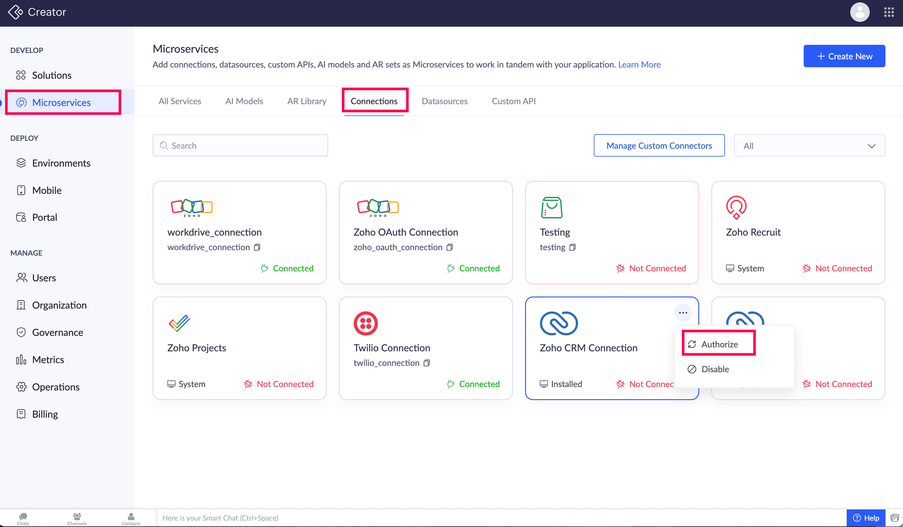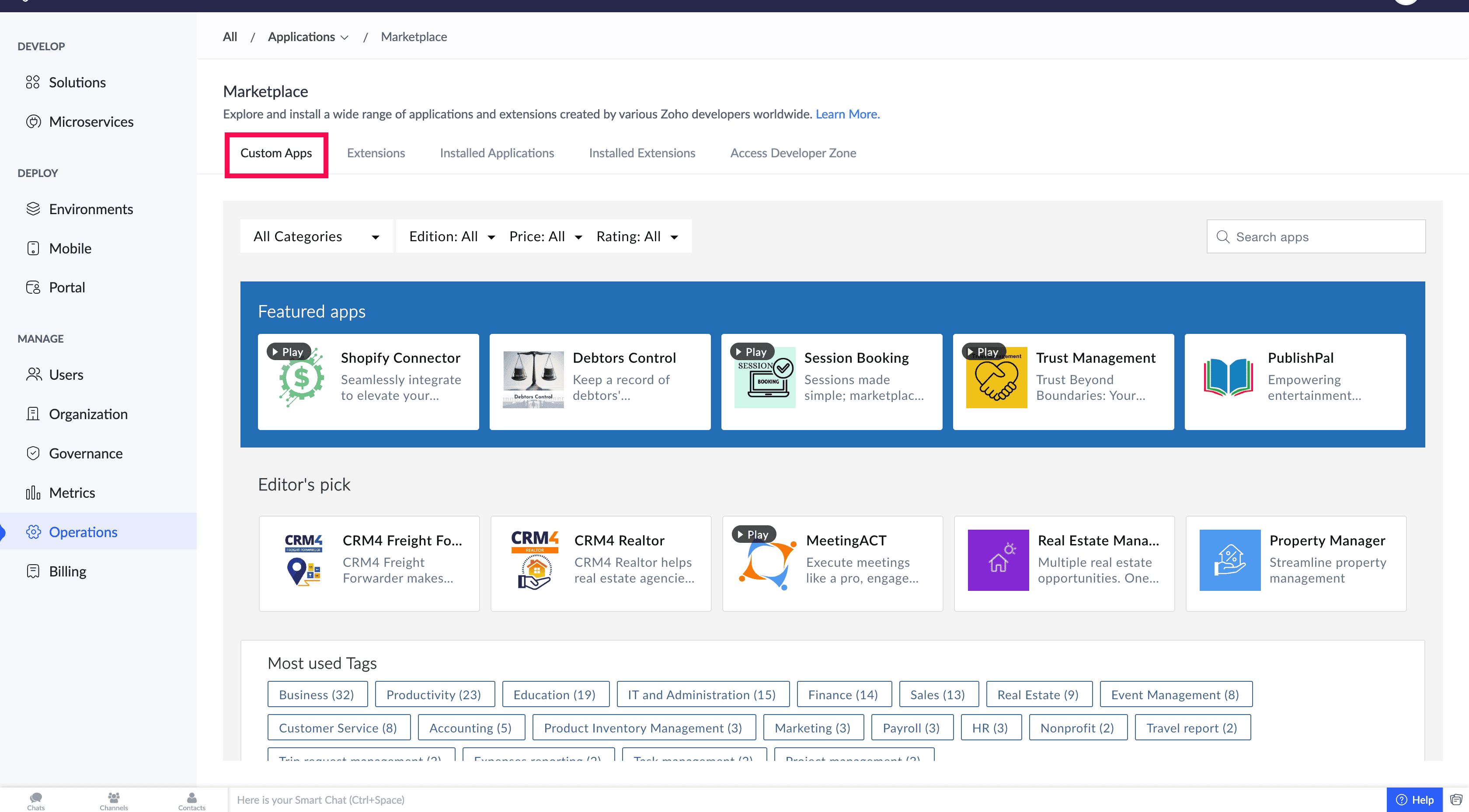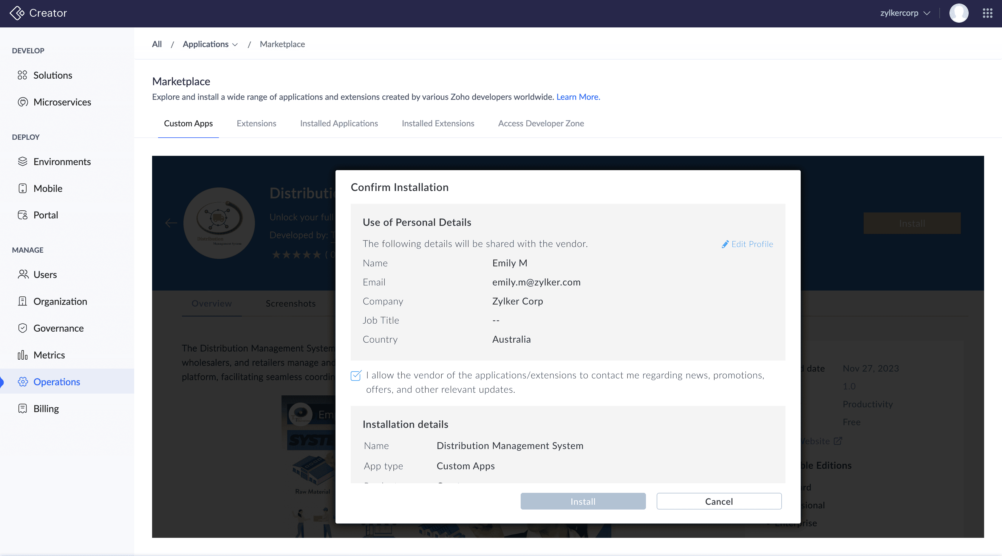 CreatorアカウントでOperations > マーケットプレイスに移動します。