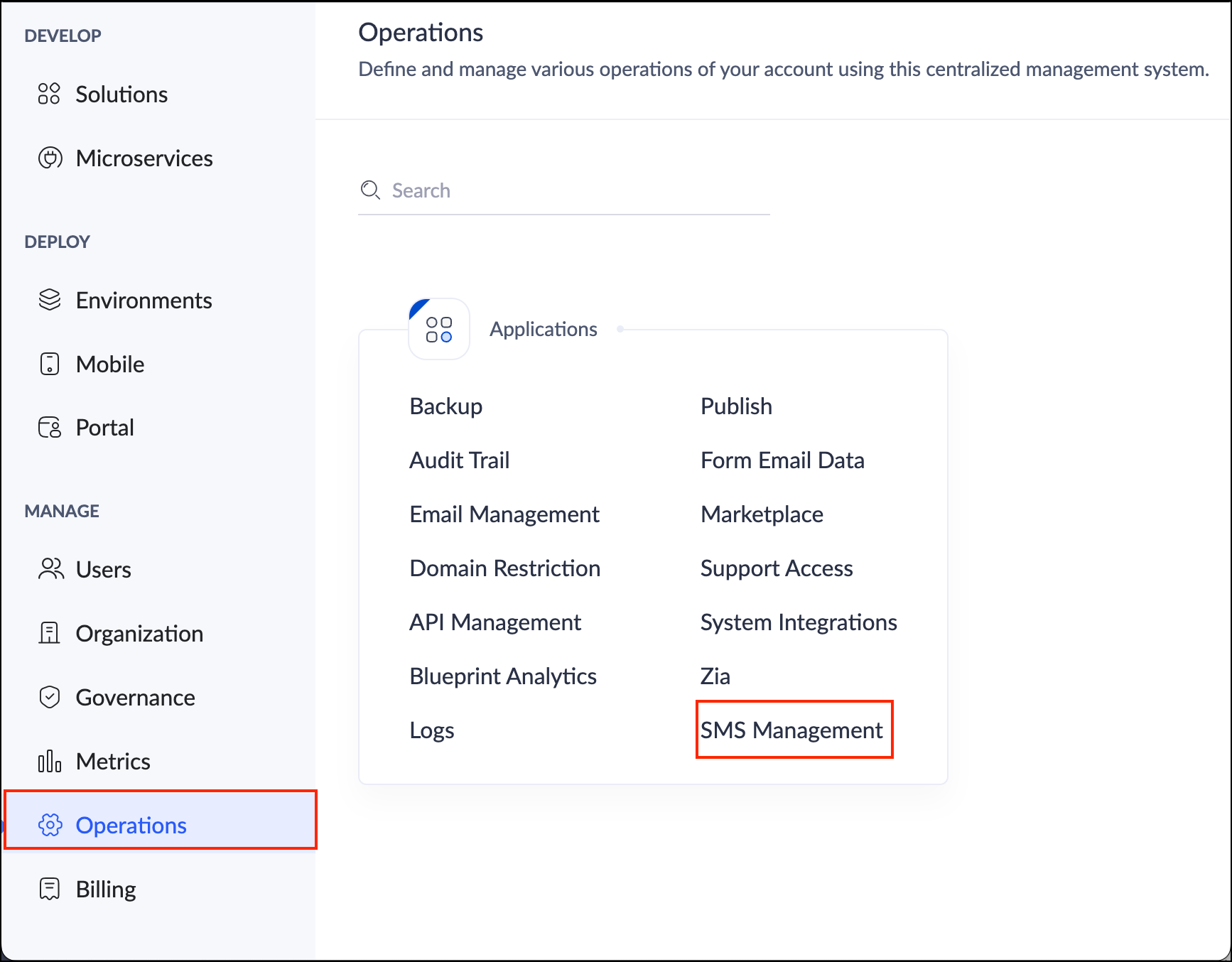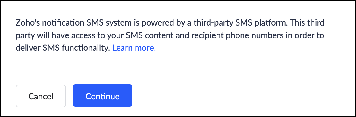 この機能が当社のサポートチームによってアカウントで有効化された後、Zoho PhoneBridgeを通じてSMS決済サービスを設定する必要があります。