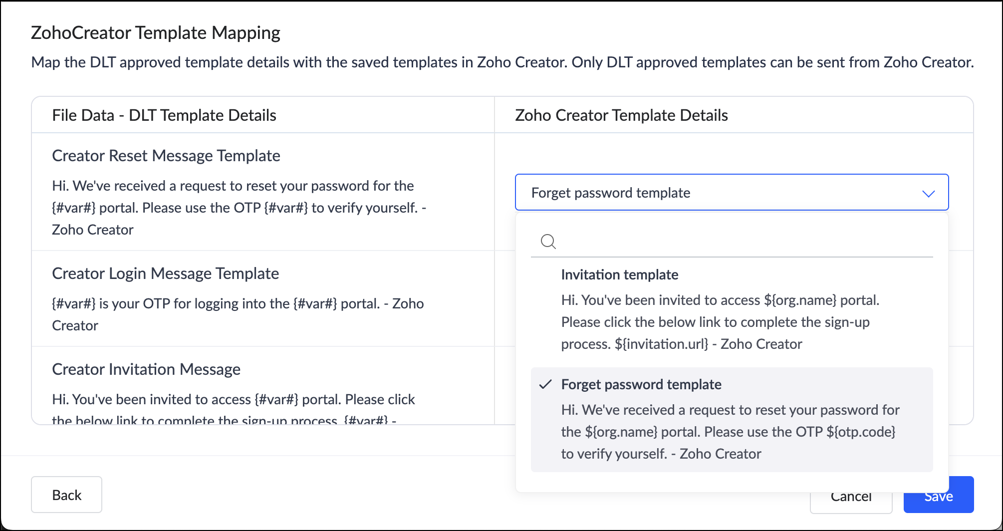 接続の承認後は、SMSテンプレートの設定を続け、それらを DLT のガイドラインに従って検証し、テンプレートを使用して通知を設定します。