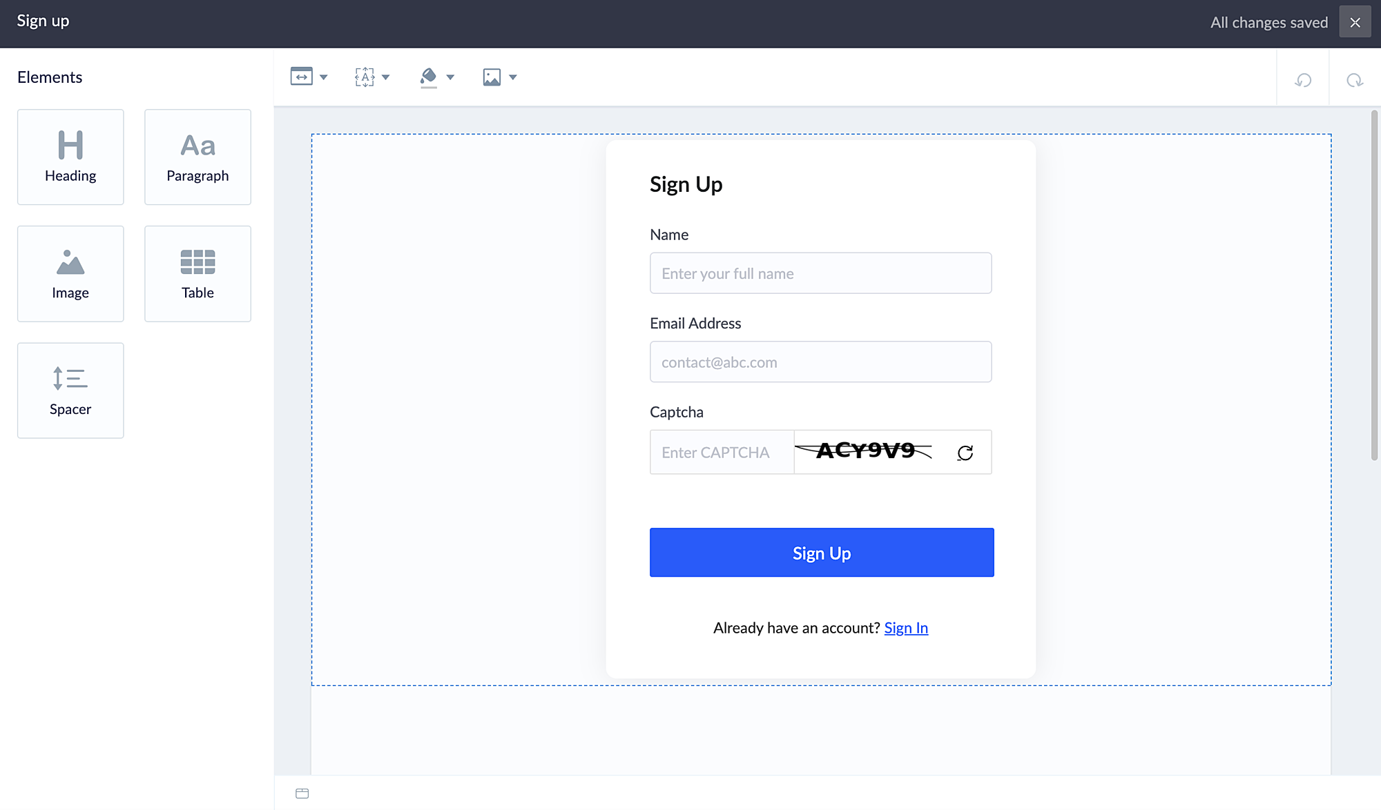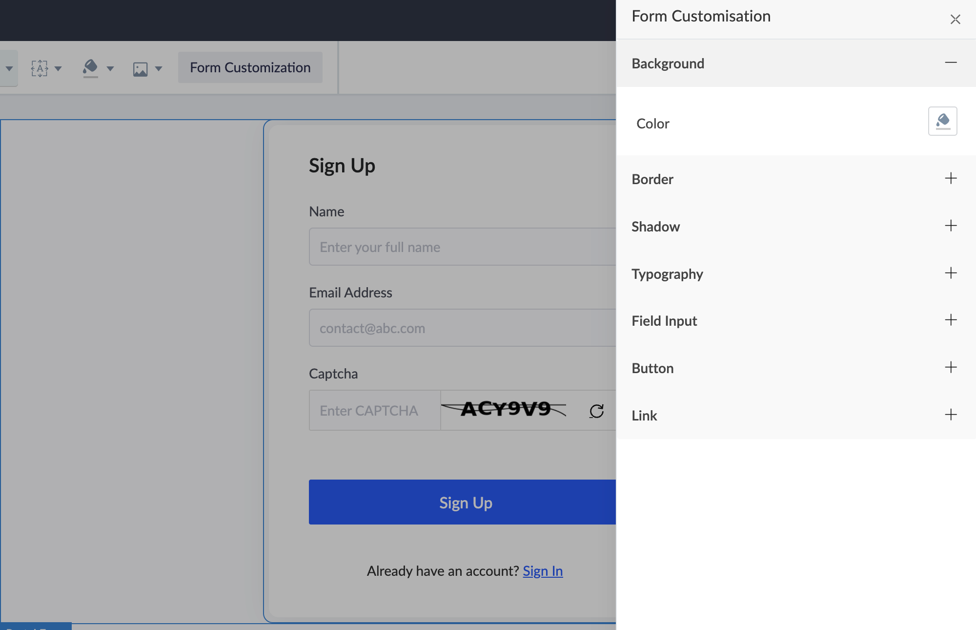 ビルダーでは、各要素専用のツールバーが用意されており、表示値や外観のカスタマイズ、システム変数の挿入など、さまざまな操作が行えます。