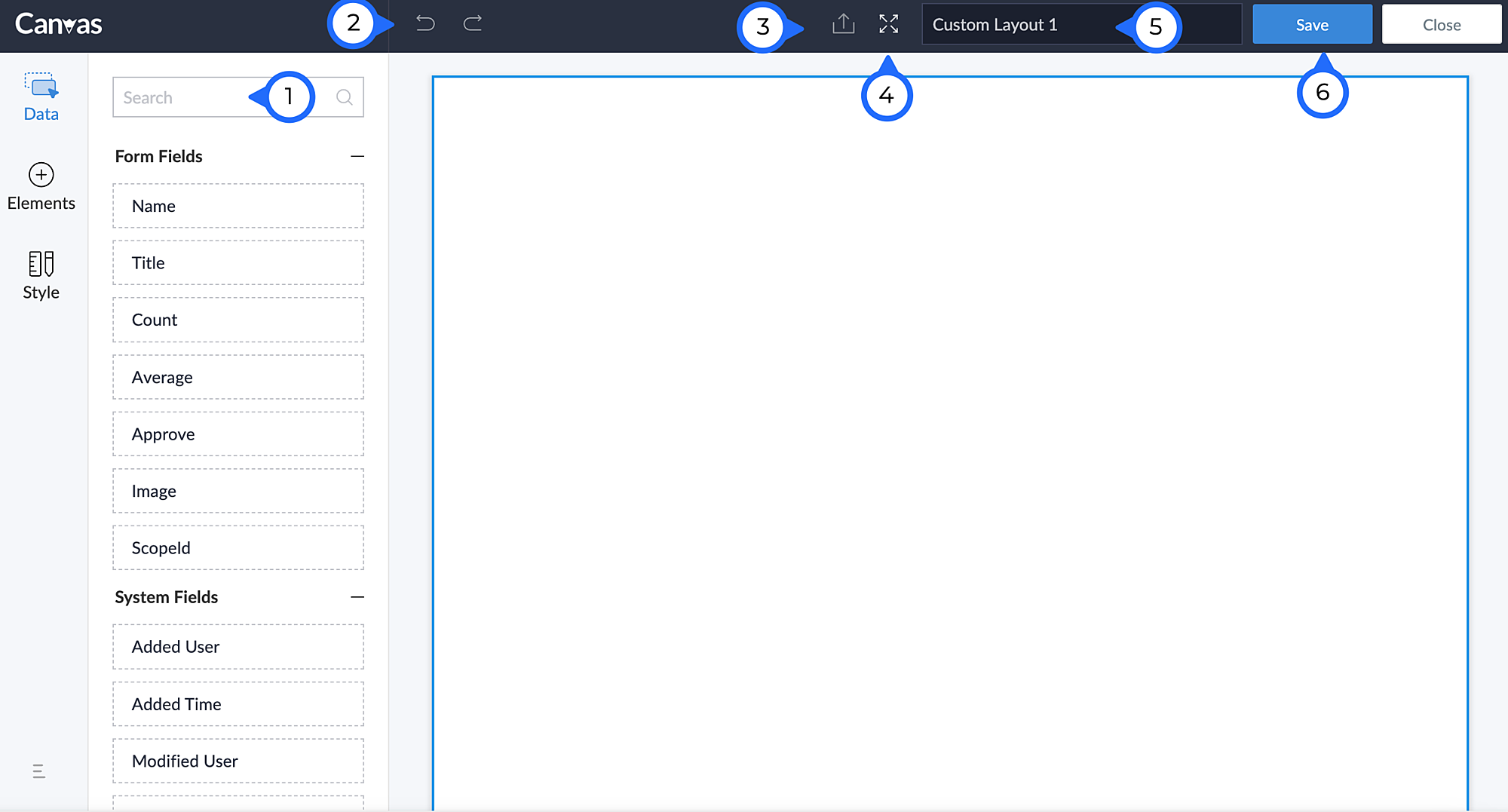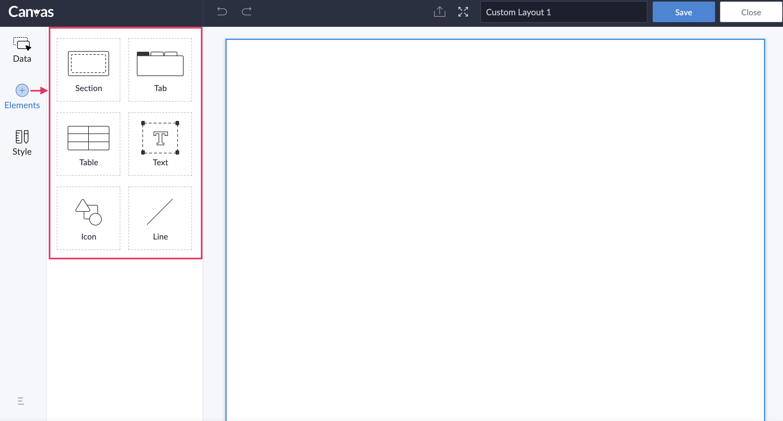 - Canvasはウェブブラウザ専用にサポートされています。つまり、データ詳細のカスタムレイアウトをデザインし表示することができます。