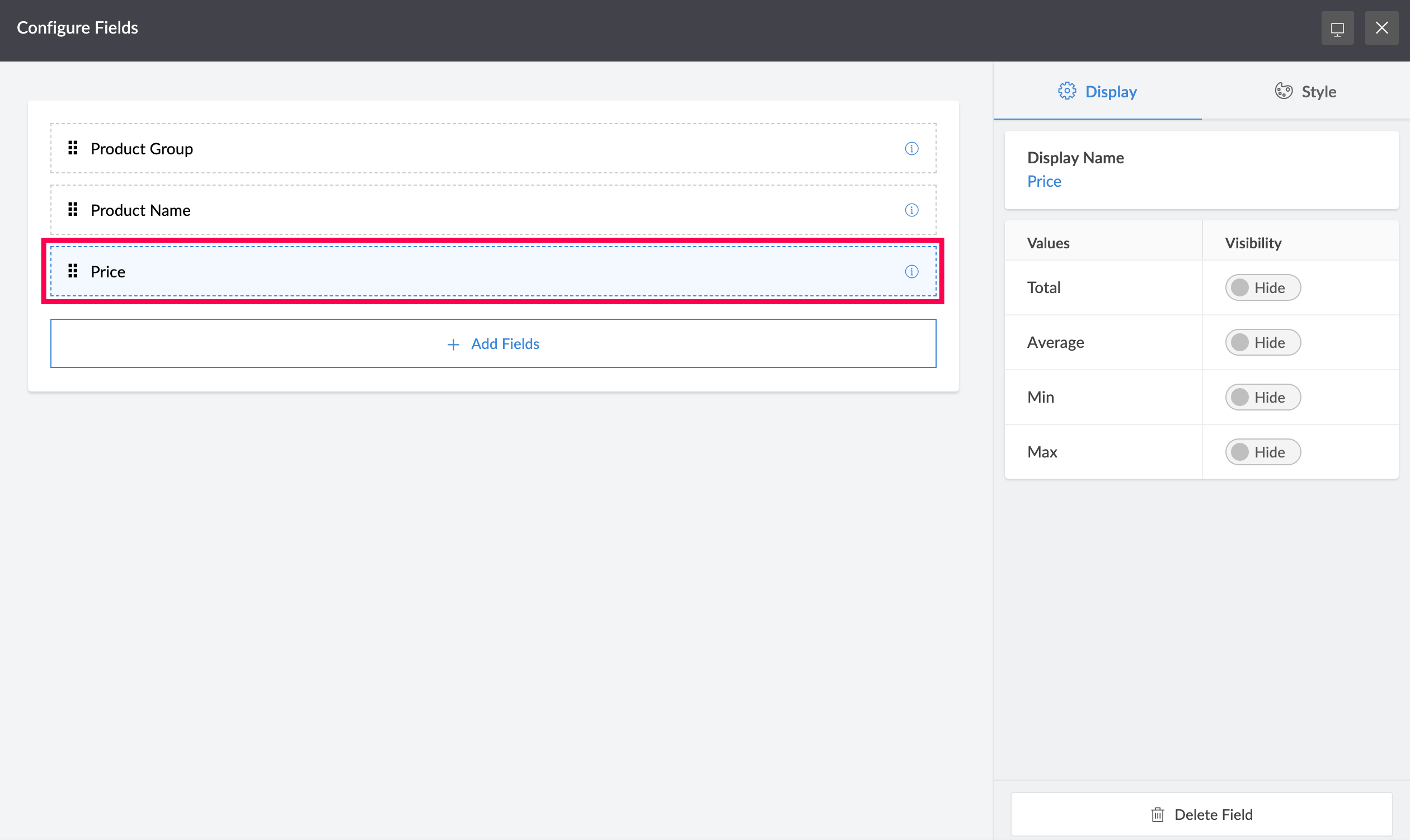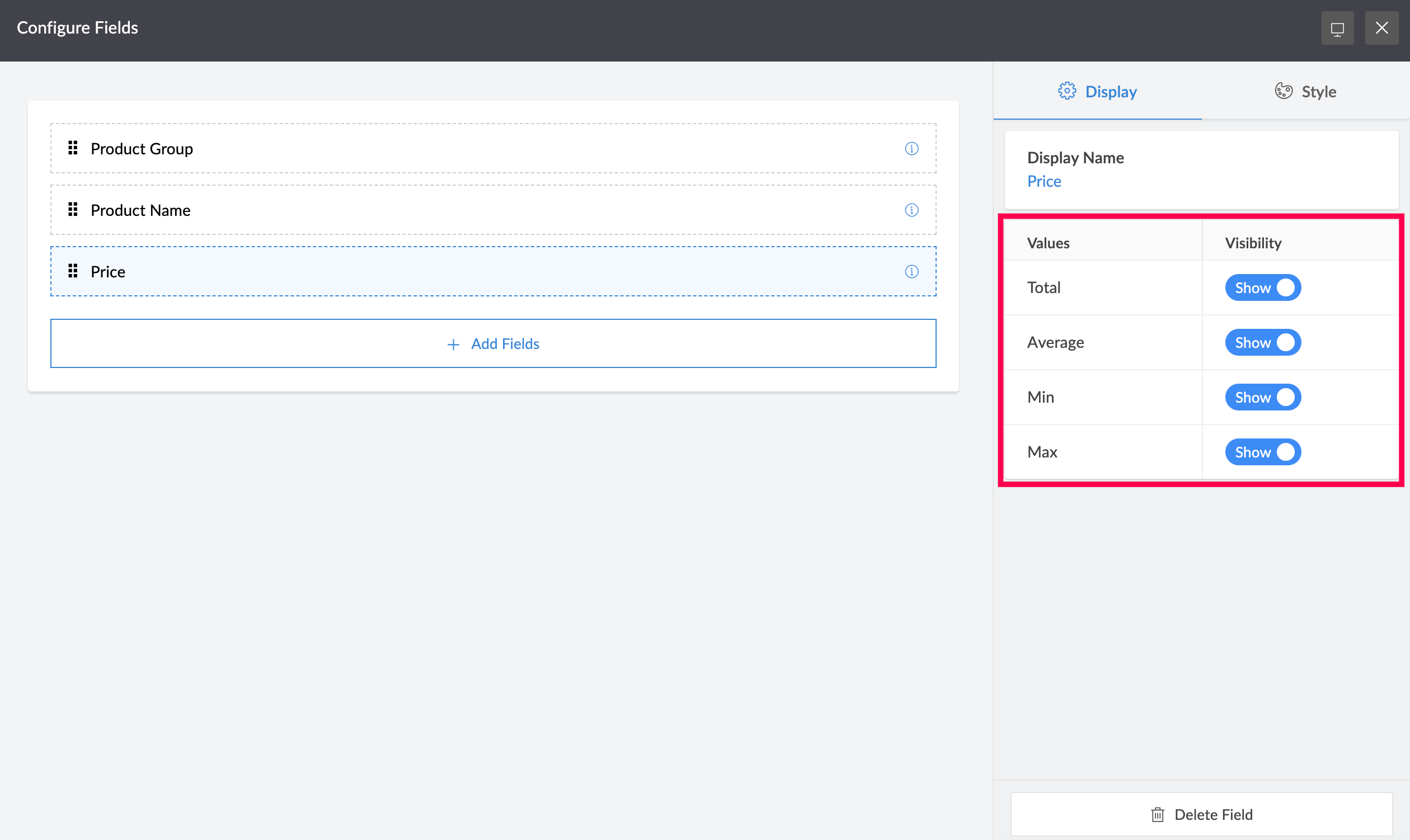 アプリケーションにアクセスすると、レポートページの下部にアイコンが表示されます。アイコンをクリックすると、集計値を表示できます。