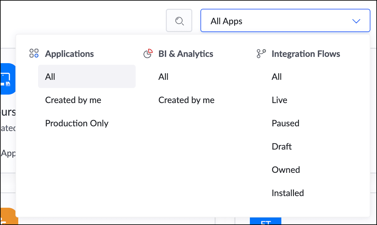 - Production only:本番環境のアプリケーションのみが表示されます
