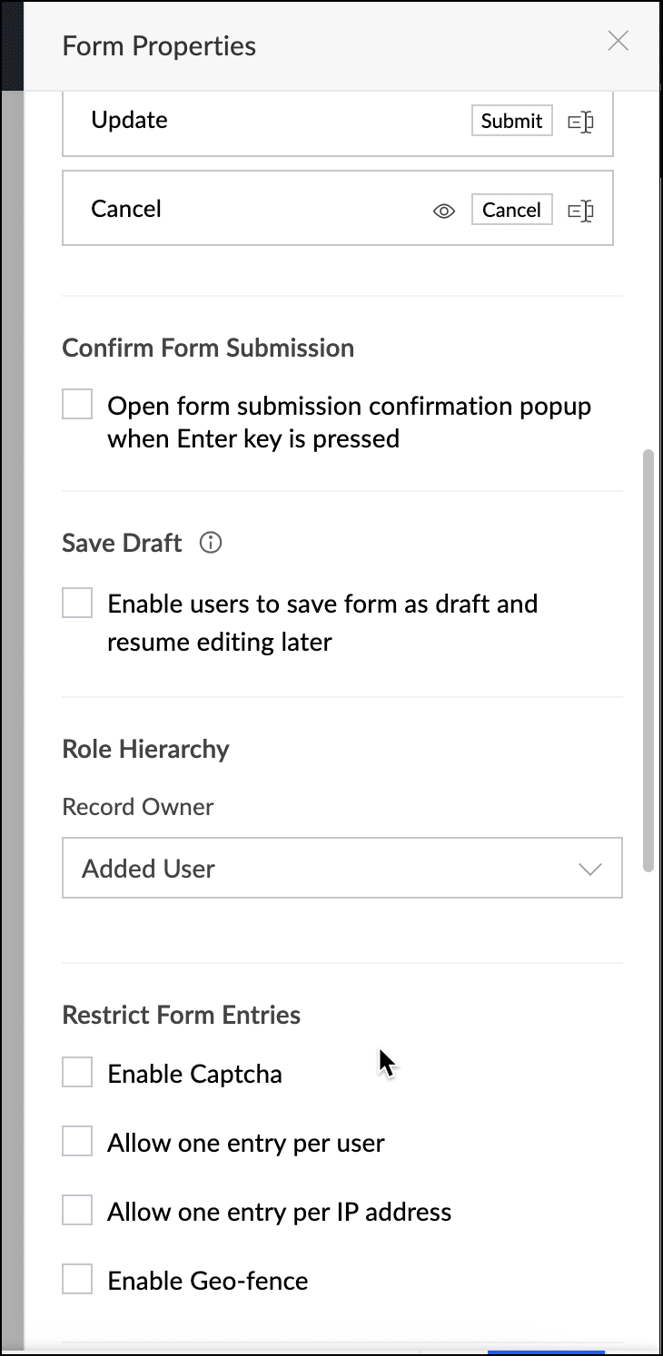 をクリックすると、パネル内でRestrict Form Entriesにアクセスできます。