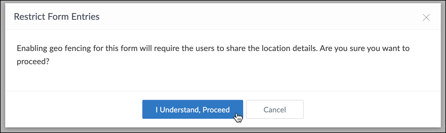 ユーザーが定義したジオフェンスの外でジオフェンス有効フォームにアクセスしようとした場合、次のメッセージが表示されます:このフォームには、制限された地理的範囲内でのみアクセスできます。