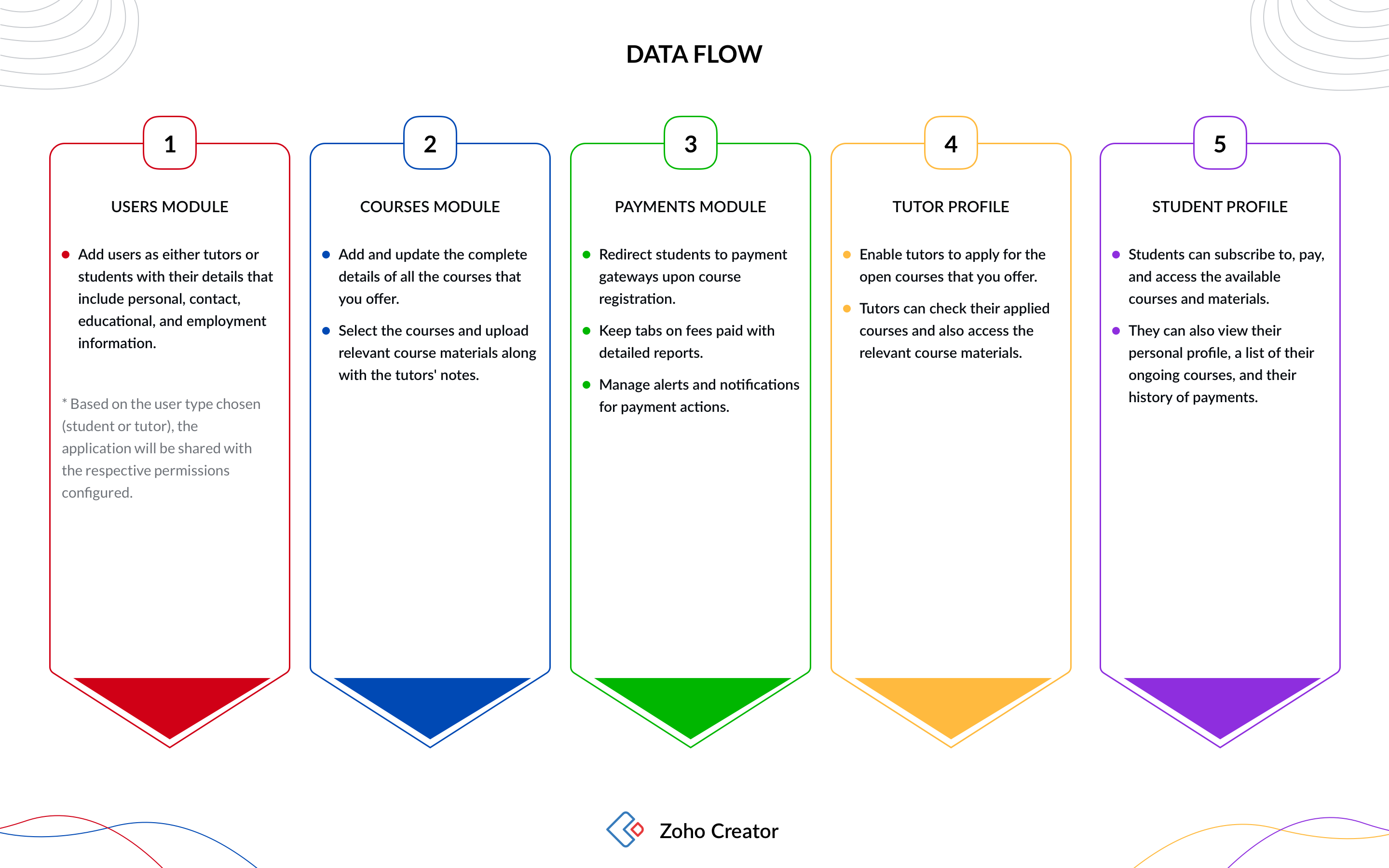 アプリには、資産を効率的かつ簡単に監視および管理するためのオートメーションが完備されています。アプリ内のワークフローは、フォーム内の特定のフィールドを非表示/表示したり、チュータリングのリクエストを受け取ったときに電子メールをトリガーしたり、コースのステータスを自動的に変更したり、フォームの送信時に別のフォームへリダイレクトしたり、フォームやレポートを共有/非共有したりなどを行うことができます。