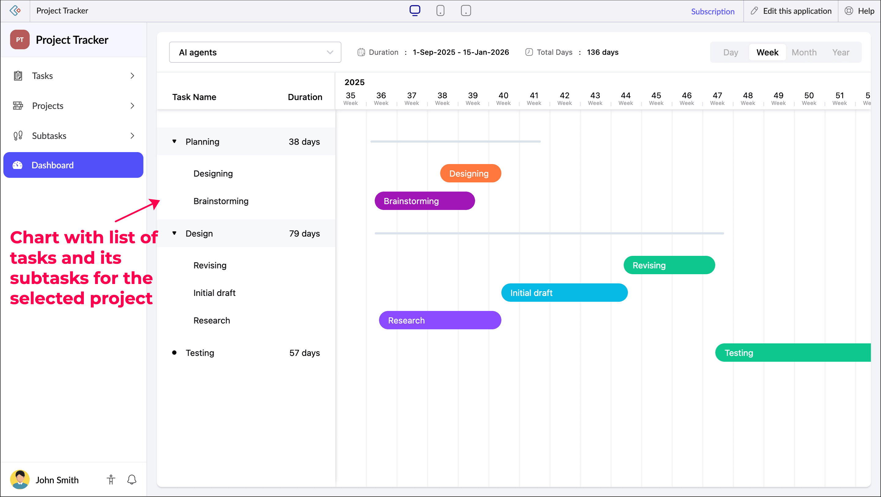 種類 3: Multiple プロジェクト with list of タスク and its subtasks
