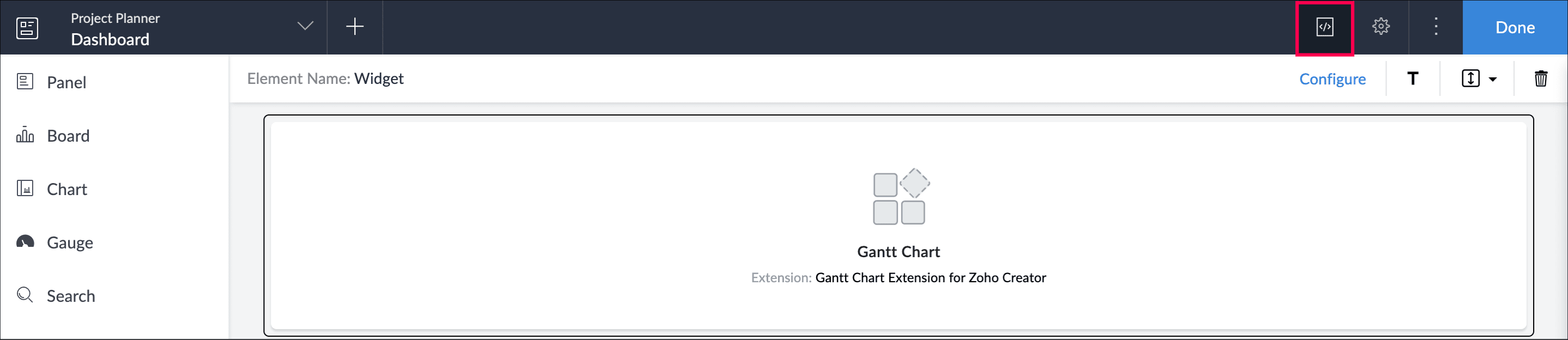 ページビルダーを開き、ガントチャート拡張機能をウィジェットとして追加します。