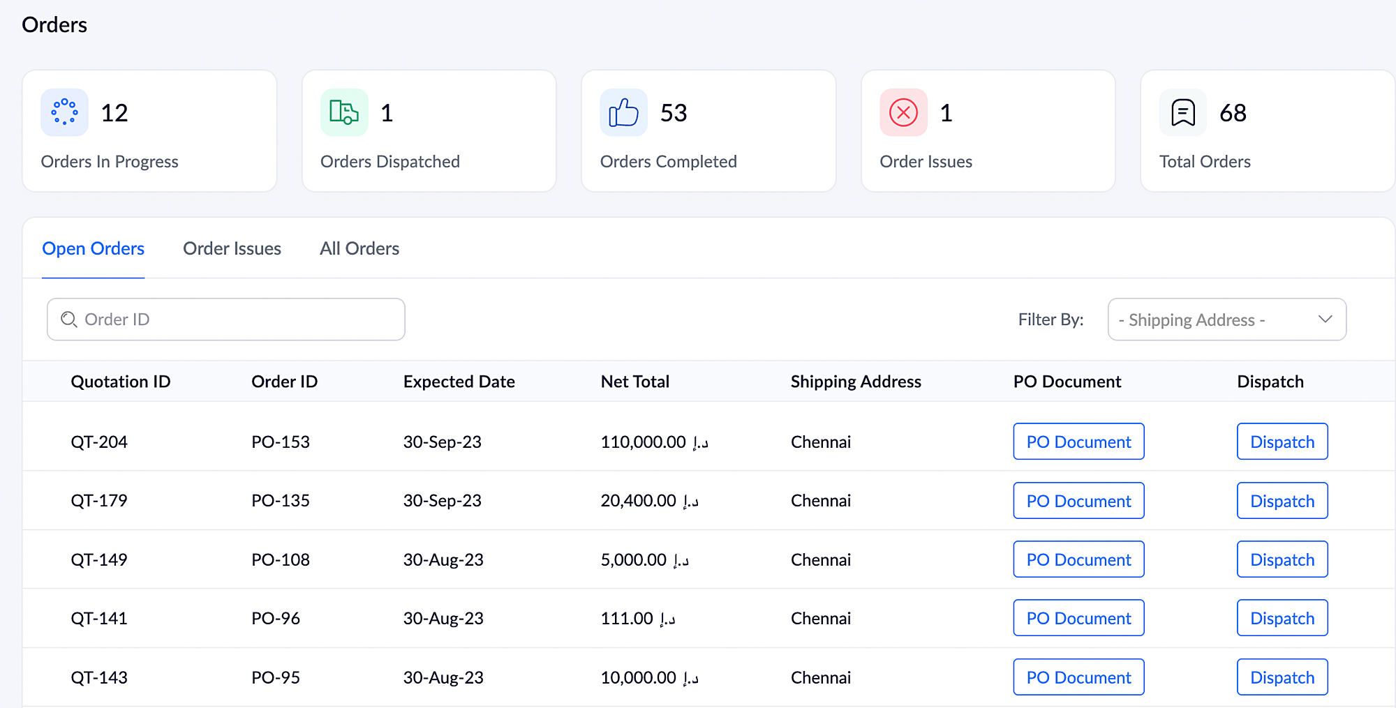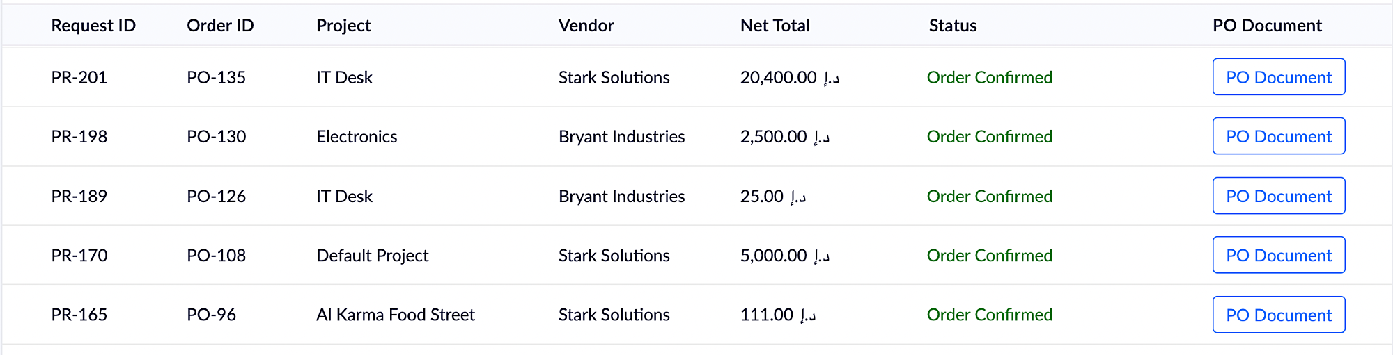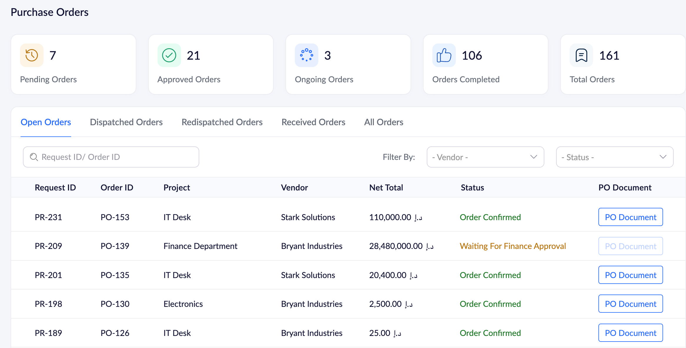 POが作成されると、「開く注文」として調達チームに送られ、さらに処理されます。