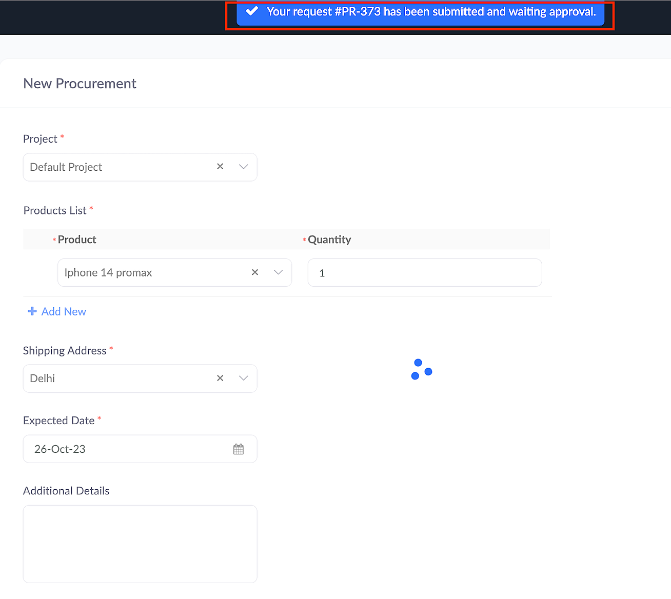 4. 正常に送信されると、PRには#PR-373のようなユニークなPR IDが発行されます。