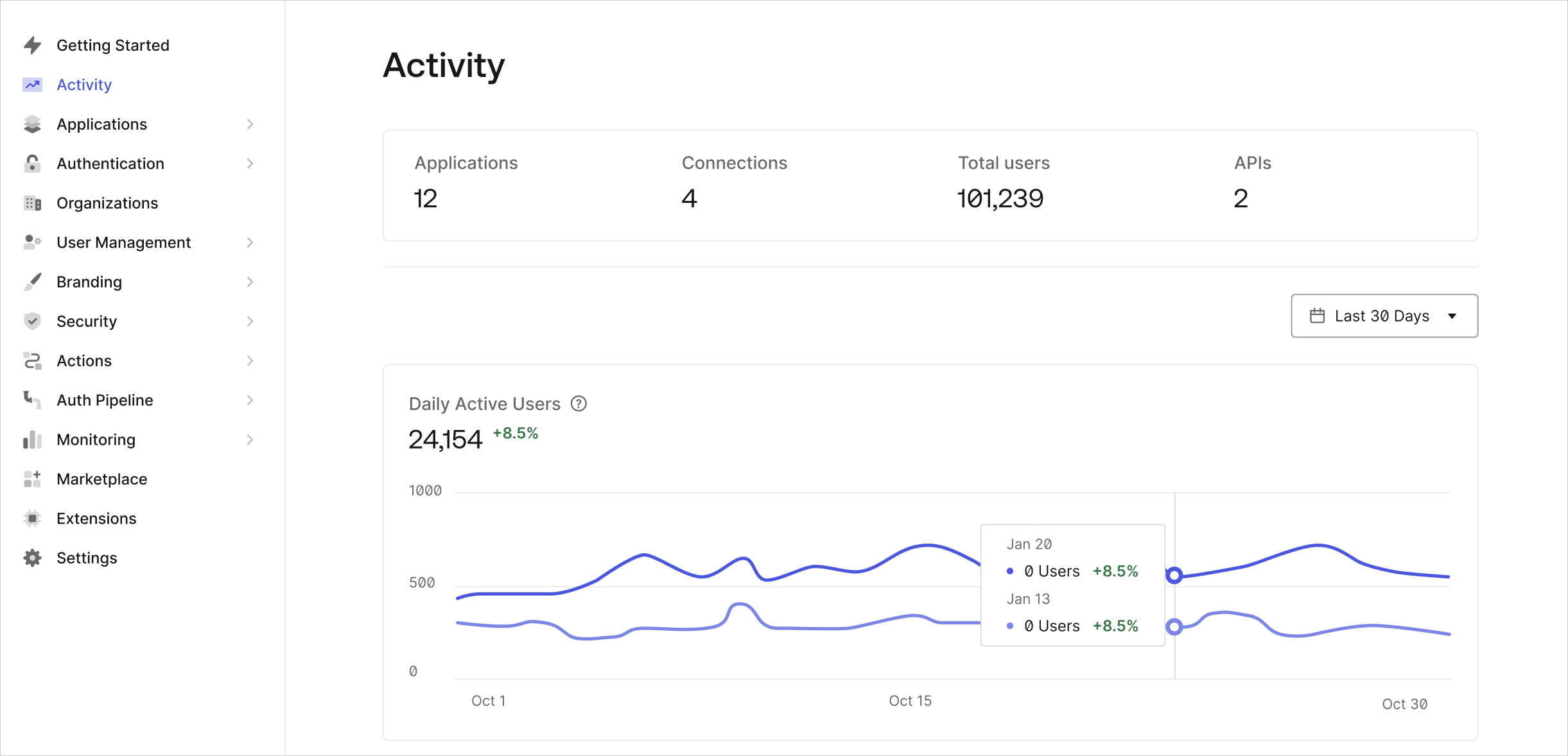 5. ブラウザーで新しいタブを開き、Auth0 アカウントにログインします。Auth0 のダッシュボードにリダイレクトされます。